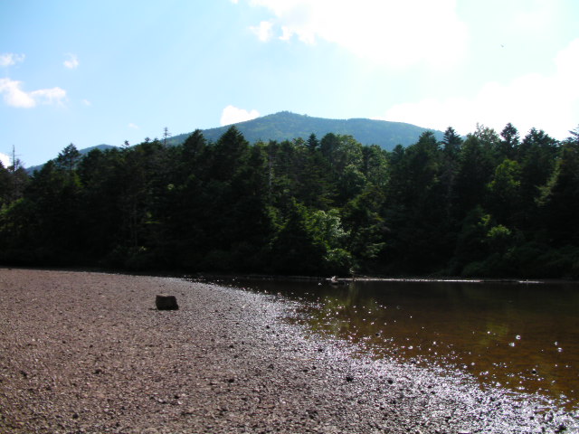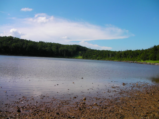 麦草峠から約1時間、緩やかな下りの岩ゴロ道を歩くと到着です。途中は深い樹林帯で視界が全く無いのでこれだけ開けた所へ出ると開放感があります。湖面を渡る風が気持ち良く、逆光で光るさざ波が綺麗でした。