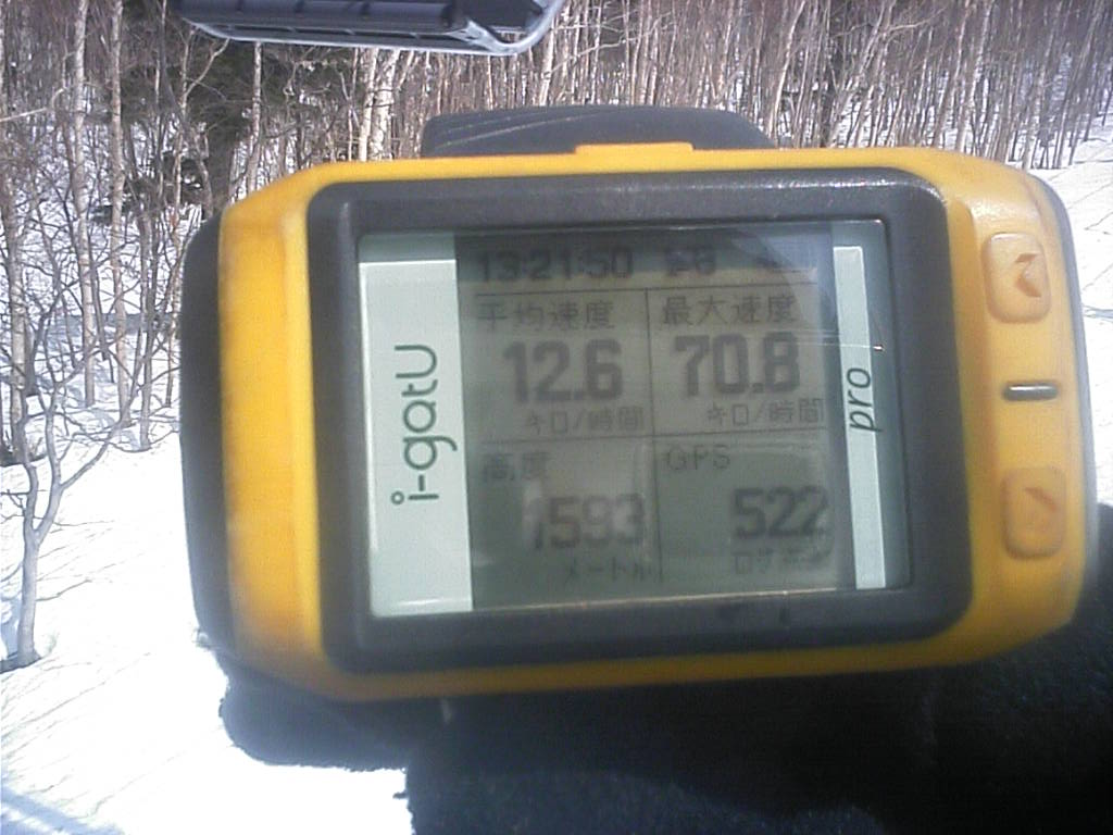 ザクザクの雪でしたがK2 MAVERICKは70.8km/hを出していたようです。これがセミファットの威力か?