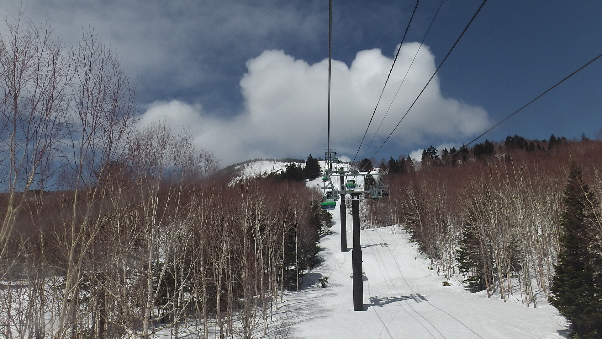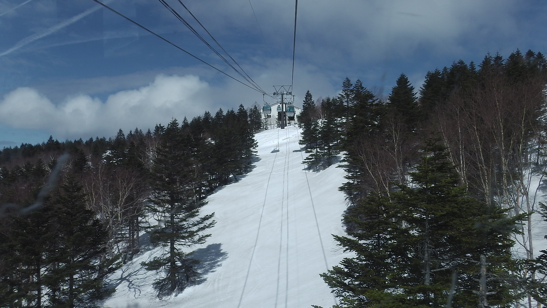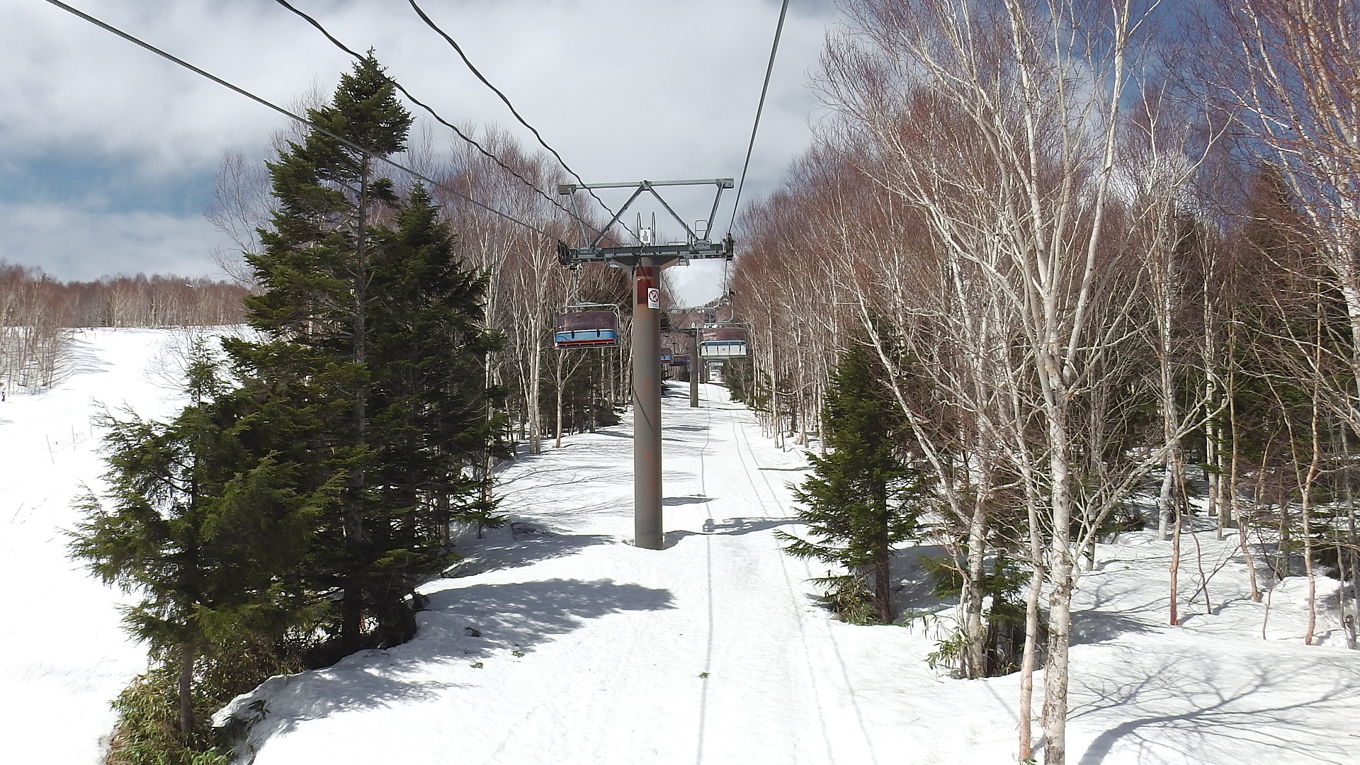 焼ビの2高から2ゴン乗車の為サウスコースを滑ります。人工雪で最初にオープンするコースなので、自然降雪に比べ融雪が遅いようで、たっぷりの残雪がありました。