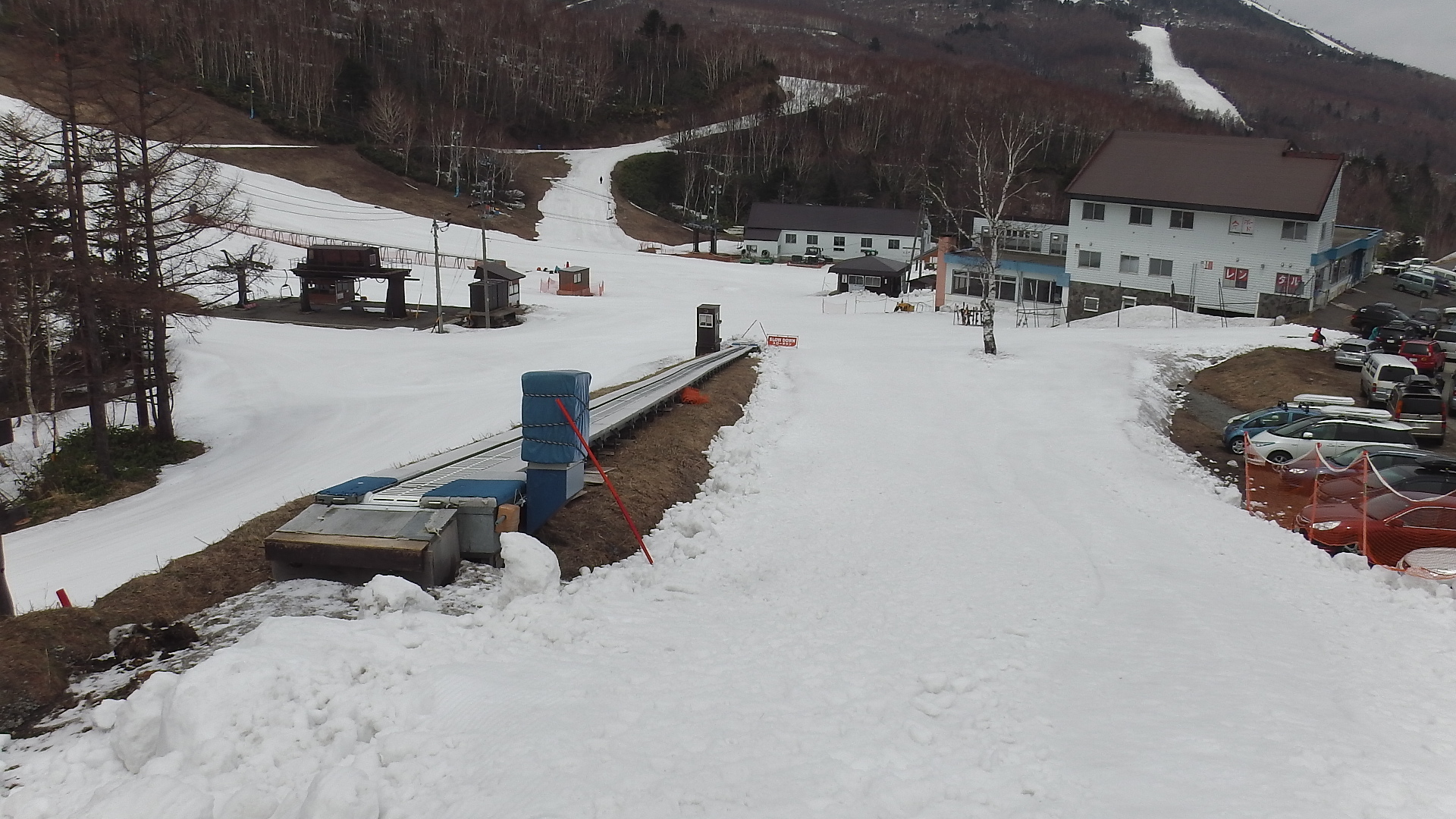 今日は(も?)移動の為の滑走で1本しか滑りませんでした。リフトも移動の利便性を考慮してか、クワッドが動いていました。滑り降りてくるとサンキッドが動いておらず、ショックを受けましたorz 橋まで登ると降り場の雪付けが無く、モーターにもシートが被せてあったので、もう動かないのかも知れませんorz