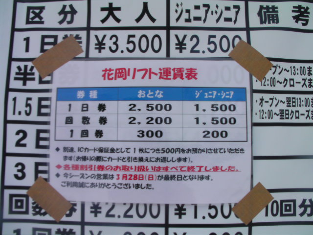 石打と言えば丸山でしょうが、今回は花岡です。行動範囲が広がったのでスキー場一覧を県内と他県に分け作り直した時に、土日祝のみの営業になった事を発見しました。津南や湯沢では多くなってきたのでしょうか?平日メグラーには辛いスキー場です(苦笑)