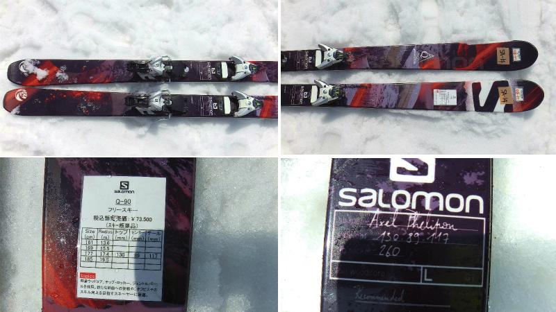 SALOMON Q-90 177cm 130-89-117 R=17.4m フリースキー ¥73500(板のみ) 「軽量ウッドコア、チップ・ロッカー、ジェントルテールを採用。新たな斜面への挑戦やオフピステのスキル向上を目指すスキーヤーに最適」