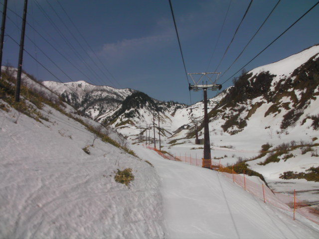 思わぬハプニングでゴンドラ山麓駅まで滑ってしまい、二度目のゴンドラ乗車で上がってきて、本白根第1ロマンスリフトに乗ってみます。スキーもスノーボードも持たない所謂観光客もちらほら見受けられました。