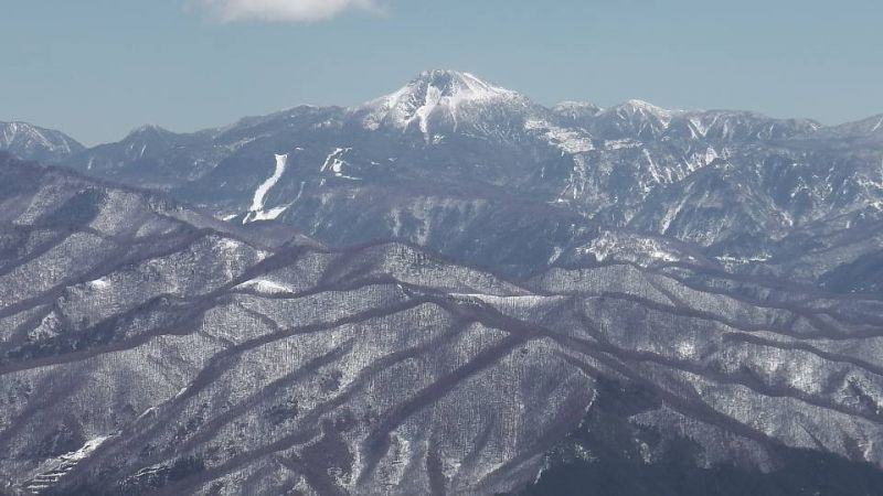 やっと太陽が顔を出して遠くの風景が見えるようになりました。 ゴンドラ内からあちこち写しています。 白根山も拝めました。