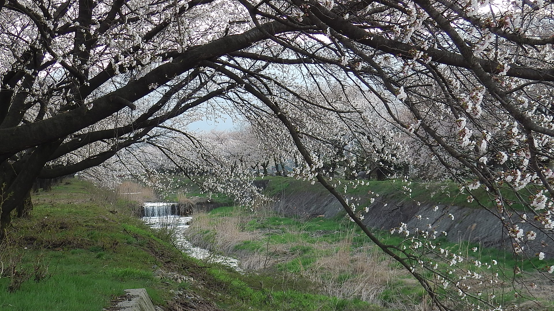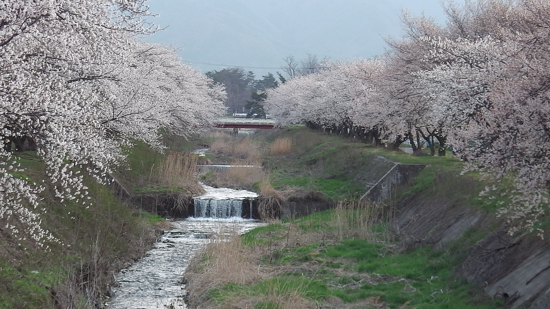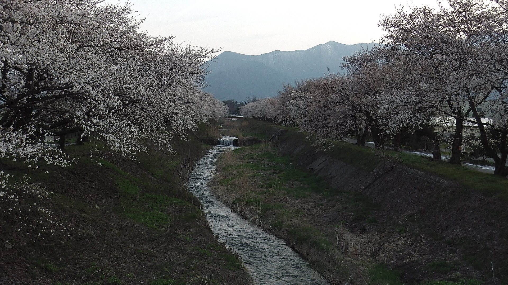 安曇野市にある黒沢川の堤防の両側に見事な桜並木があります。雪友のmotocafeさんの地元で、この土日が満開になりそうとの情報を入れてくれので立ち寄りました。 シャルマンの帰りに立ち寄りたいとメールを入れたら、わざわざ現地に出向いてくれました。