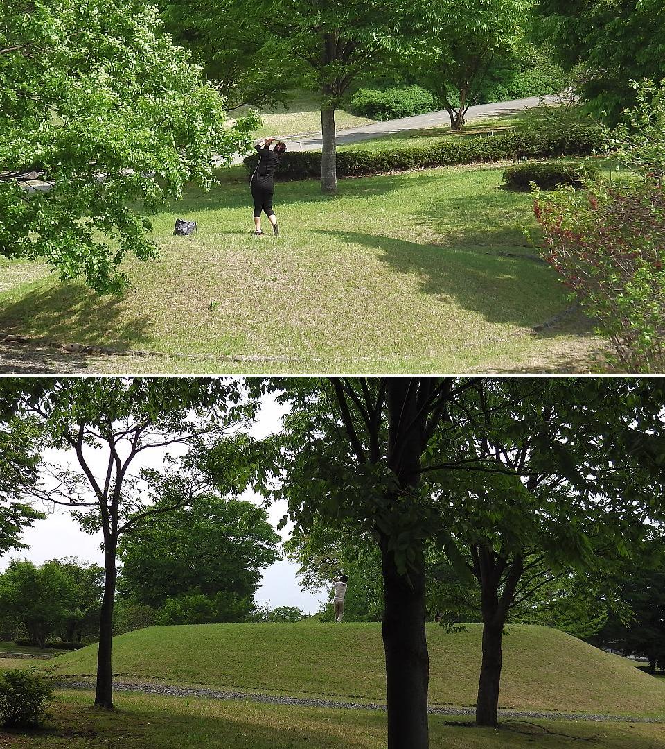 国指定史跡の古墳群にて目撃し撮影したもの。興味の無い人にとっては墳丘はティーグランドに見えるのかorz