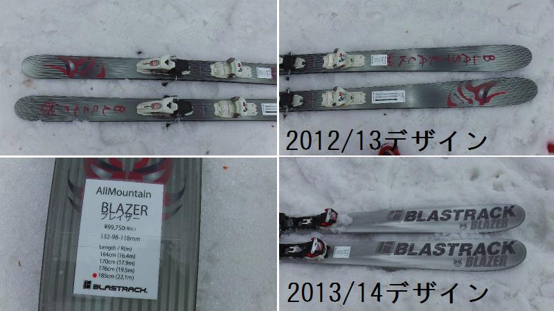 BLASTRACK BLAZER 185cm 132-98-118 R=22.1 オールマウンテン 12/13モデルと変化無しでデザインだけが変わるそうです。13/14モデル試乗会と言うのに当年モデルの持ち込みでしたorz オイオイorz スペック的には欲しい数字ですが・・・ (サムネイルは13/14デザインです)