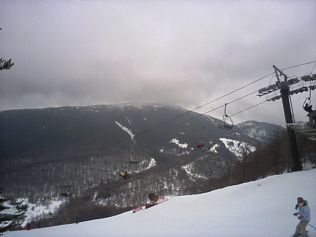 到着直後は霧が深くどこにゲレンデがあるのかも判らず苦労しました。道路はずっとドライでしたが残り3Kmあたりから路肩に雪が残っており、車坂峠の向こう側は(群馬県側)ミニ雪の回廊状態でした。尚分類上は長野県ですが地図上では完全に群馬県のようです。カーナビの検索も群馬県の登録でした(汗)