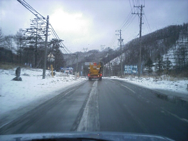 塩カル散布車の後ろに付いてしまいました。