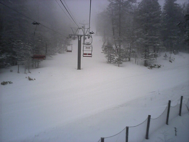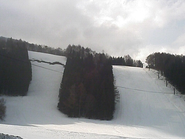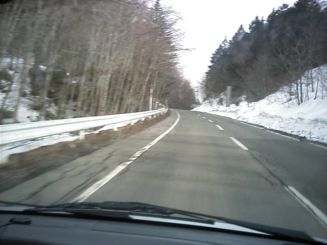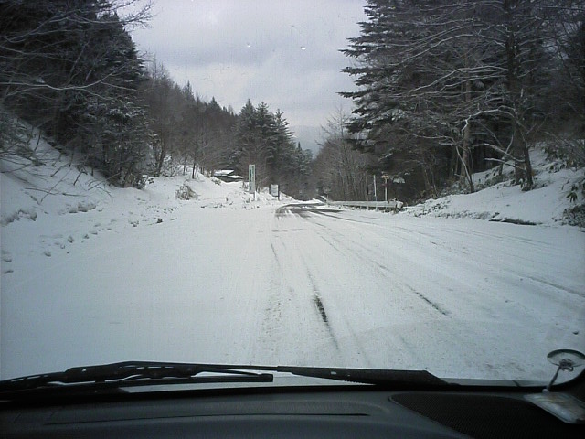 上空に寒気が残った所へ南岸低気圧の通過で昨晩の天気予報で中部地方にも雪マークが出ました。若しかしたらこの時期に新雪???と言う事で新雪期待で野麦へ出動しました。しかし朝起きると自宅は小雨、、、伊那も道路はウェット。木曽路に入るとドライ。ゆ・雪は降らなかったかと思いつつ境峠を登り始めると集落が切れる辺りから薄っすらと雪模様。峠は圧雪でした。(と言っても殆どウェット、数箇所シャーベットと言う状態でした) |
