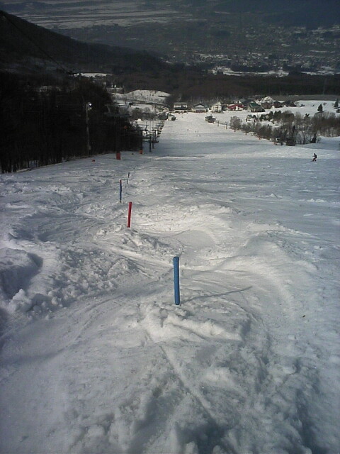 コースは幅の狭いコースが浅間山を正面に見ながら何本も平行に並んでいると言った感じです。雪質も朝一からザラメ状態。流石に軽井沢でも緩んでいました。客数も平日の割には多く、プリンス系の集客能力の高さを感じました。また駐車場では普段余り見ない「群馬」が多かったです。