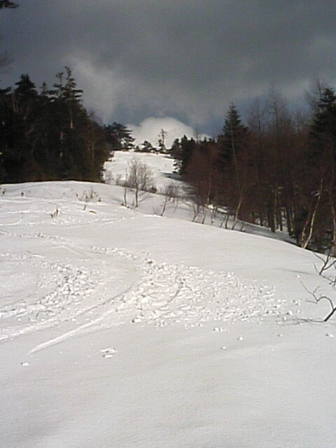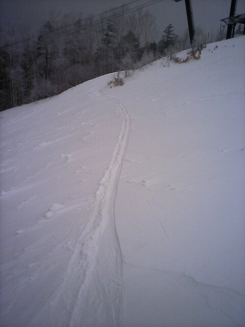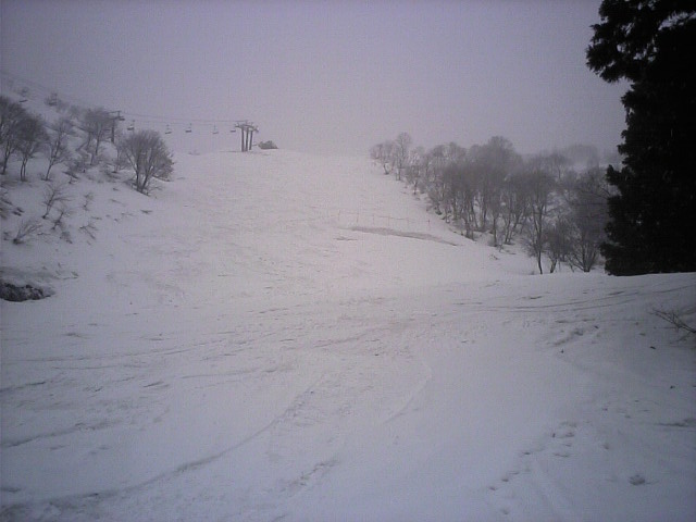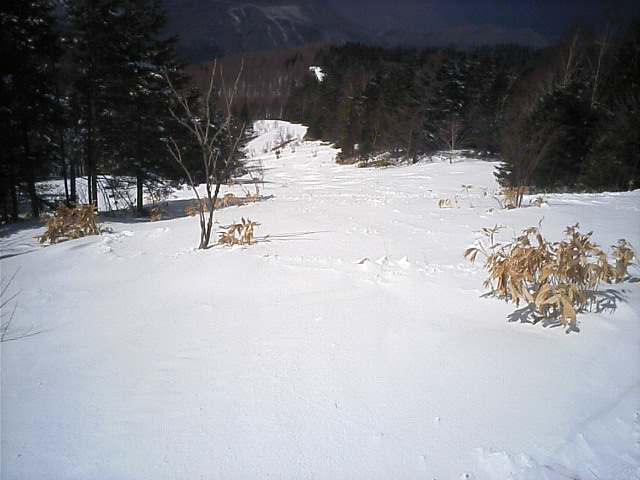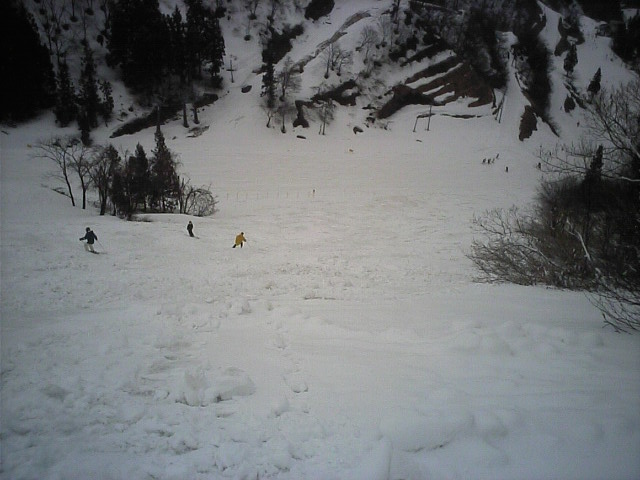 名無しコースから続けてパノラマの小山の最右翼を滑ってみた。(携帯画面が暗くて小山のTOPを写せなっかた模様^^;)