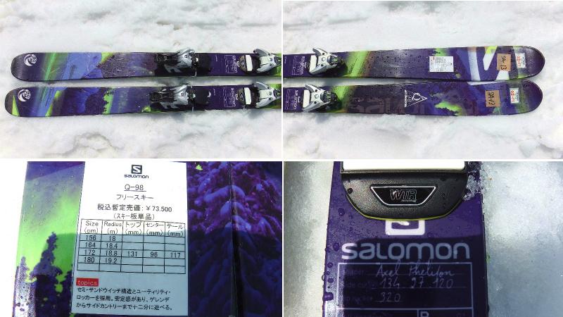 SALOMON Q-98 180cm 134-97-120 R=19.2m フリースキー ¥73500(板のみ) 「セミ・サンドウイッチ構造とユーティリティー・ロッカーを採用。安定感があり、ゲレンデからサイドカントリーまで十二分に遊べる」