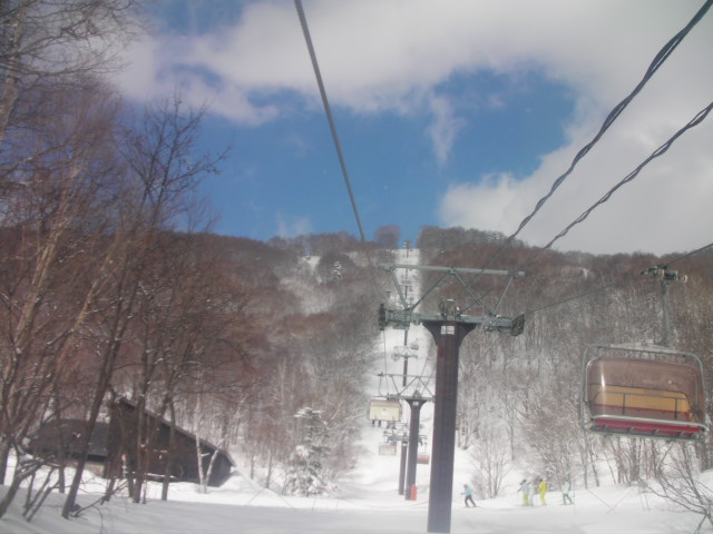 「横長のワイドなゲレンデは緩急の変化に富み、初心者から上級者まで滑り応え十分。一の瀬ファミリーへのアクセスに便利な動く歩道も好評です。」という一の瀬ダイヤモンドスキー場です。昨年の訪問時には乗車出来なかったクワッドに乗車できました。ここで早目の昼食にしました。