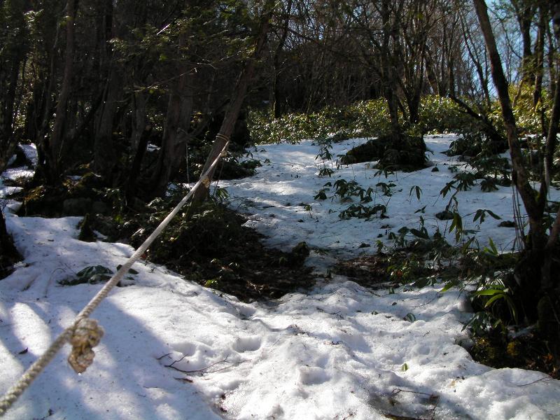 驚いたことにまたまたハイクアップしている3人パーティーの方とも遭遇しました。こちらの方々はテレマークスキー+シール登行で、ラッツラッツから1時間かからずにここまで来たとの事でした。時間的に早かったので、昼飯前の一滑りでパッションの途中まで滑って再び登り返すとの事でした。八ヶ岳界隈でのBCも楽しんでいるとの事でした。