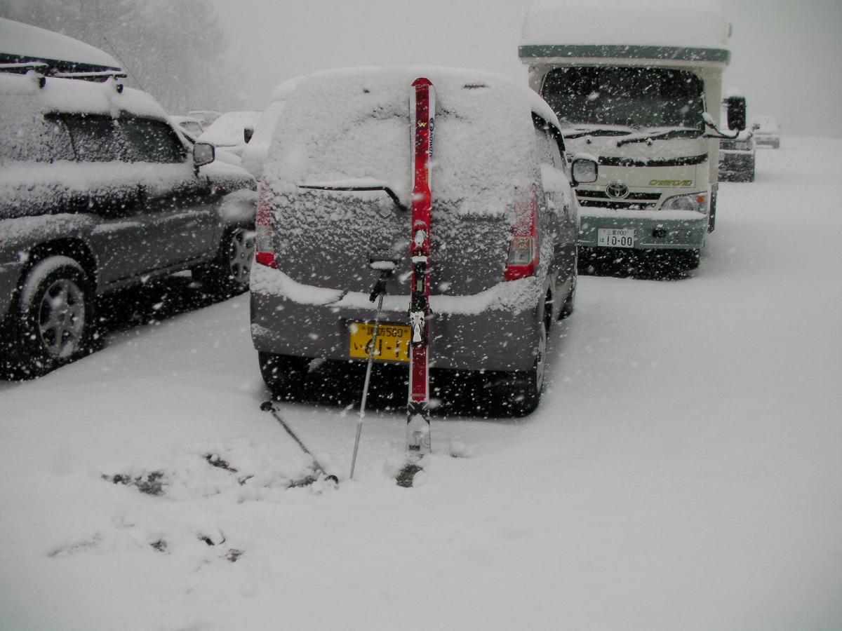 移動時路面情況=想定外の降雪で路面温度も低かったのか、あっと言う間に路面も真っ白になっていました。こんなこともあろうかとスタッドレスタイヤを履いた車で来ましたので私は無問題でしたが、ノーマルタイヤでスタックし立ち往生している車も散見されました。