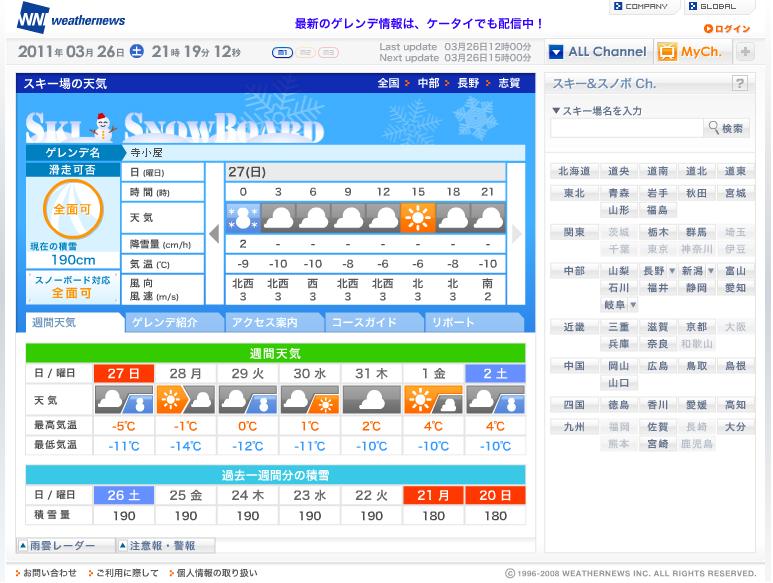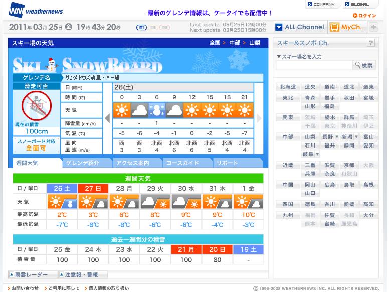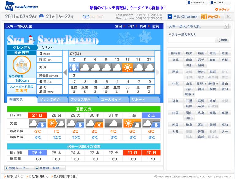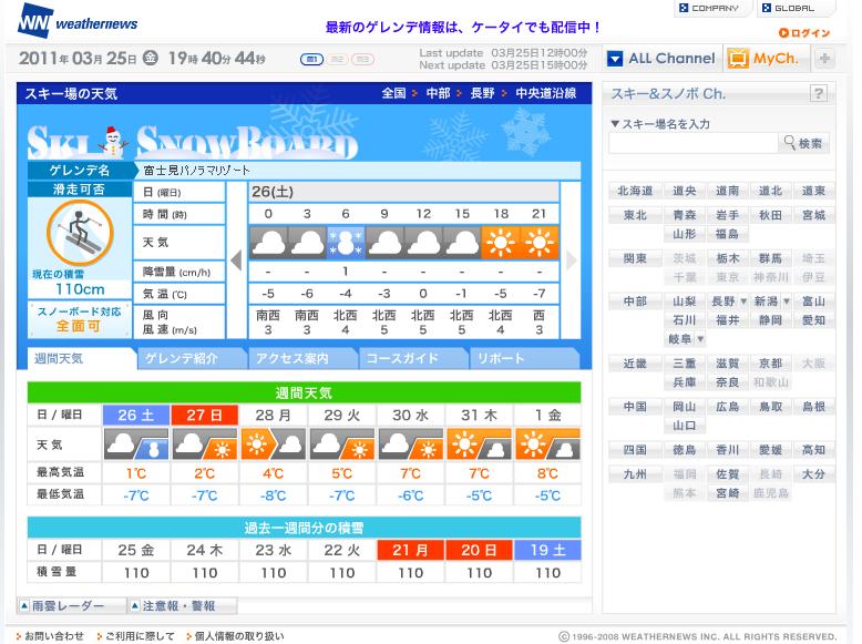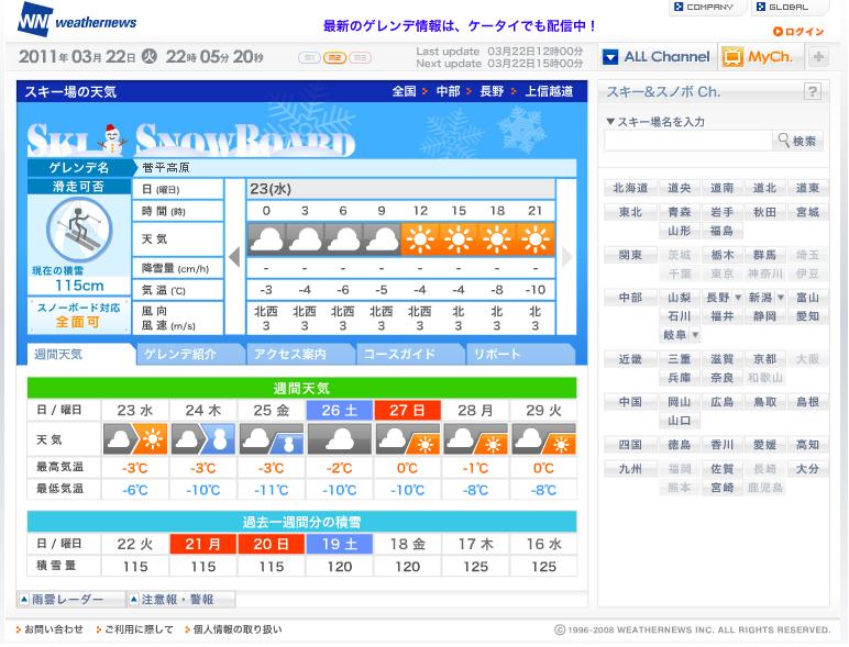 スノーウェイさんから頂いた支援券で滑ってきました。大震災以降計画停電を踏まえ平日は休場で土日のみの営業になってしまったので、今日を逃すと訪問できないところでした。到着時は天候回復しそうな感じでしたが、時間の経過と共に悪化の一途で最終的には吹雪になってしまい、短時間の滞在となってしまいました。