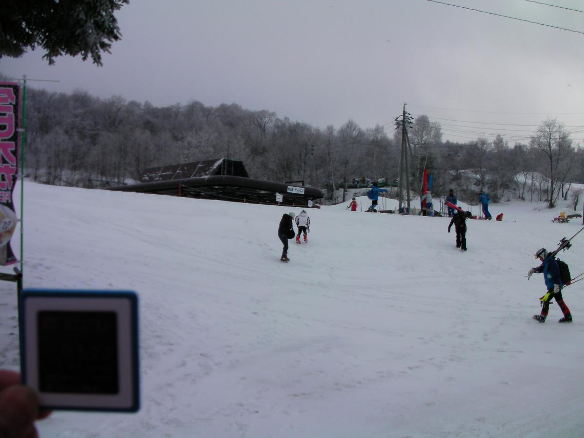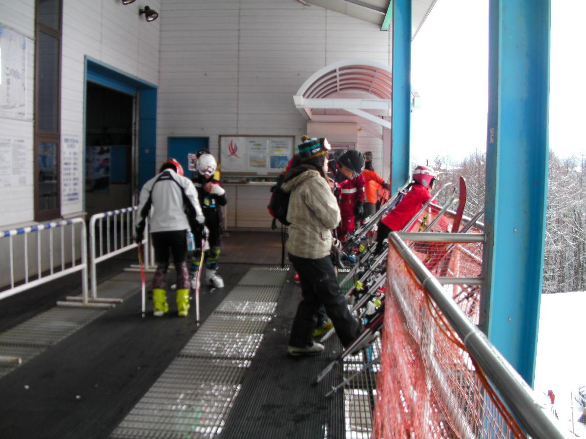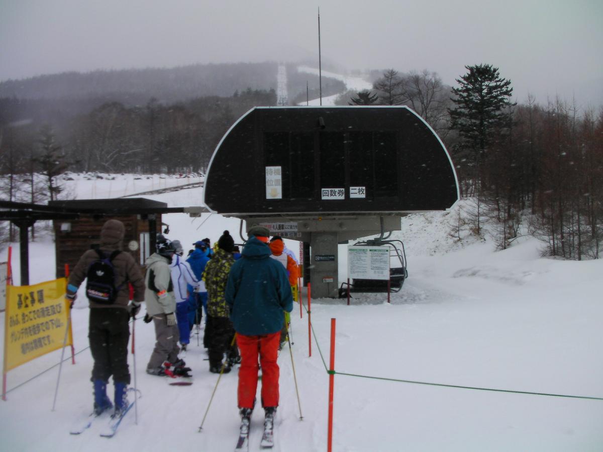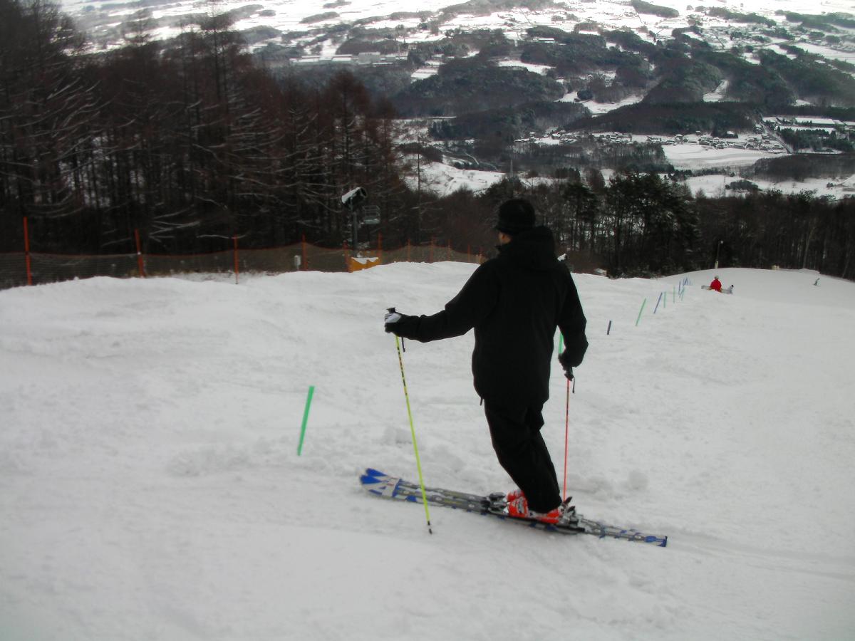 天候回復を待ちましたが好転しないので引き上げます。山頂から富士見C→チャンピオンCと繋ぎ滑りました。来場者は9割レーサー、残りがレジャースキー&ボードという感じでした。圧倒的にスキーヤーが多く、ボーダーは絶滅危惧種という感じのスキー場でした。