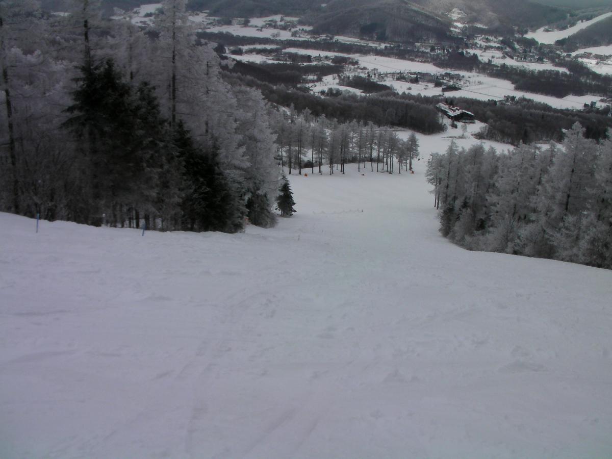 「ハイジの気分でイケイケ!」のアルプスコースの滑走です。途中に北アルプスパノラマのビューポイントがあるようですが何も見えませんorzここは普段も滑走者が少ないのか荒れておらず、そこそこの滑走感がありました。