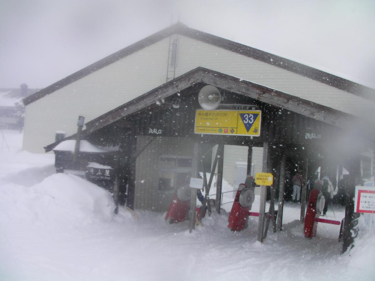非常に寒い日で蓮池のリフト乗場から見える路面温度計は-11度を表示していました。その為か電池の消耗が早く、ジャイアントのベースに有るアスペンさんでコーヒーを飲みながら充電させてもらい、一気に寺子屋へ移動しました。TOP標高が2000mを越えているので吹雪でした。