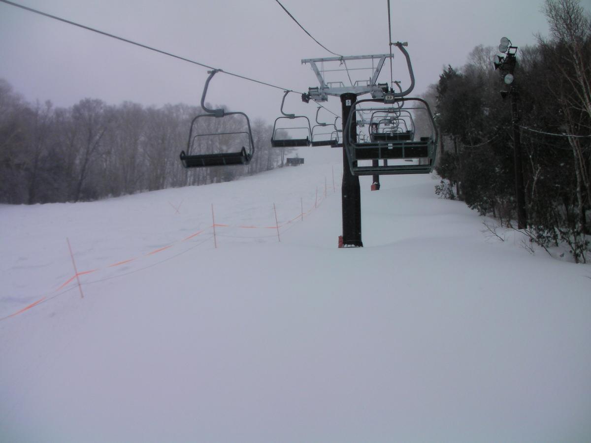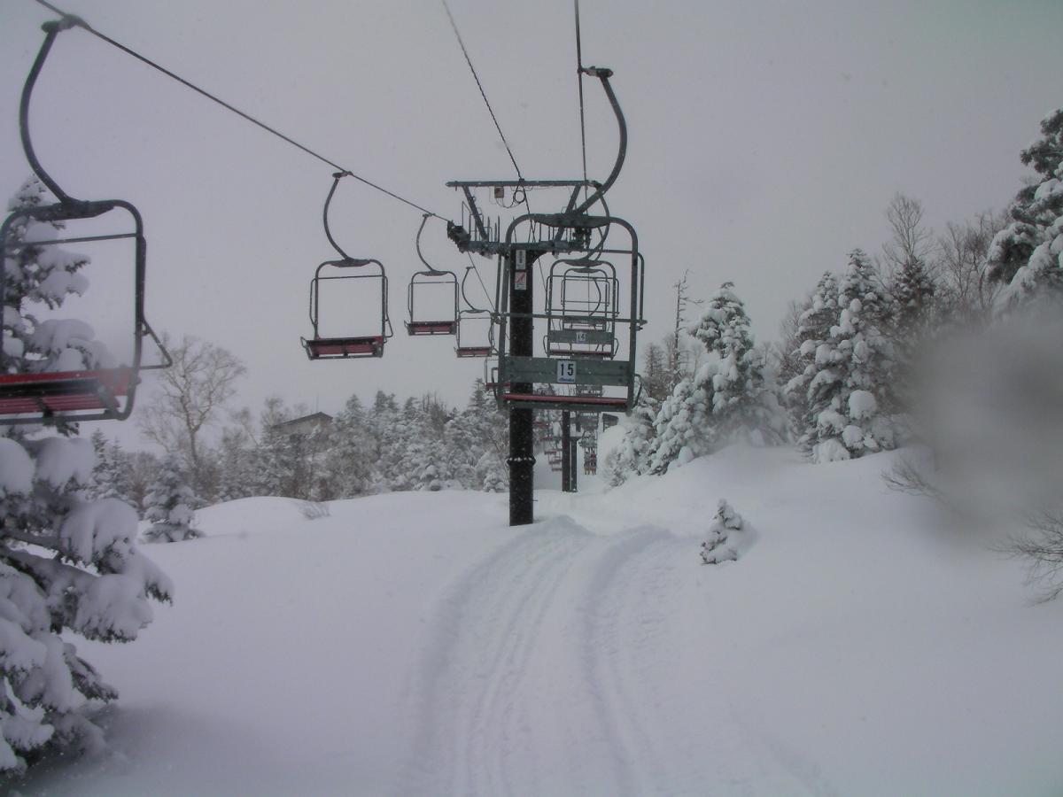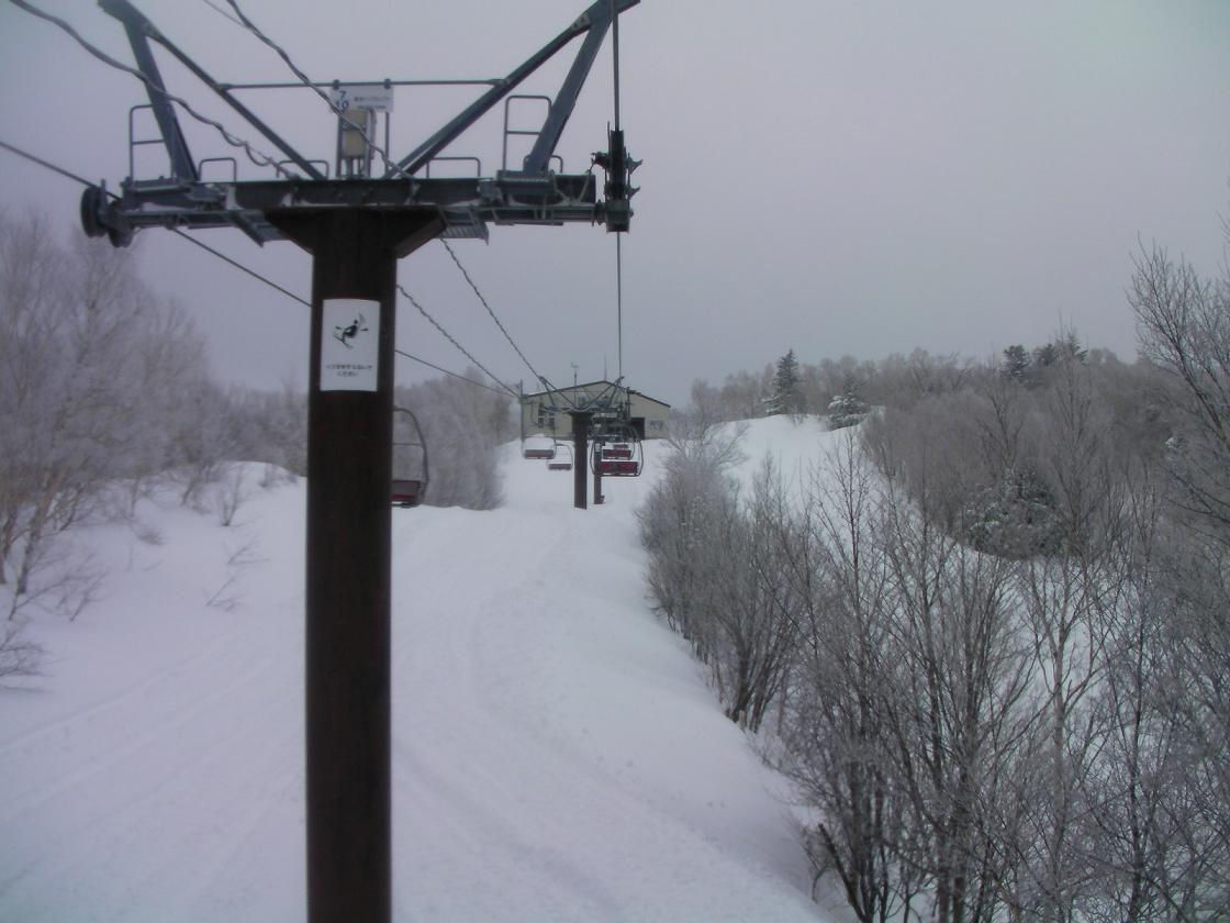 リフの廃止が相次ぐ中、このリフトは今シーズン架け替えとなりトリプルリフトになりました。コブで有名な丸池Aコースが丸見えです。