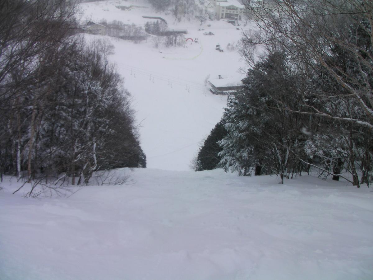 丁度中間辺りを滑る感じのコース取りで滑ってみました。だんだん天候が怪しくなってきましたorz