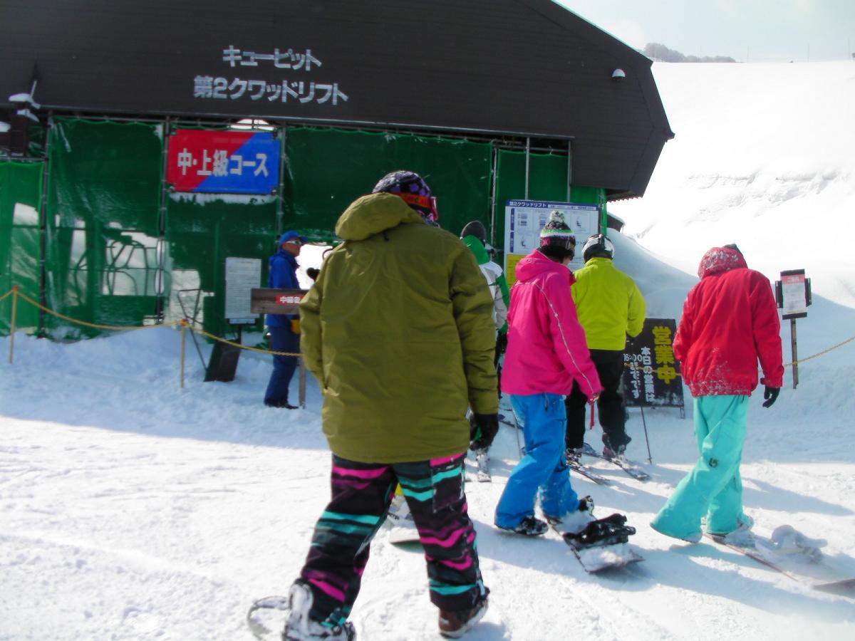 第2クワッドを右手に降りて滑るラメールです。途中未圧雪の部分があって、深い!とか膝だ!とか興奮しすぎて転倒しています(苦笑)ここのリフトだけは若干待ちがありました。