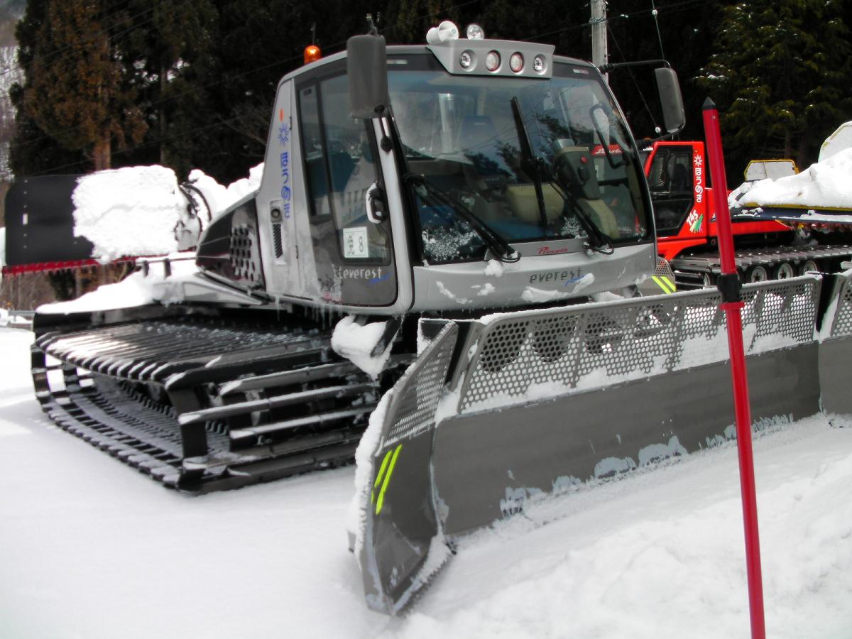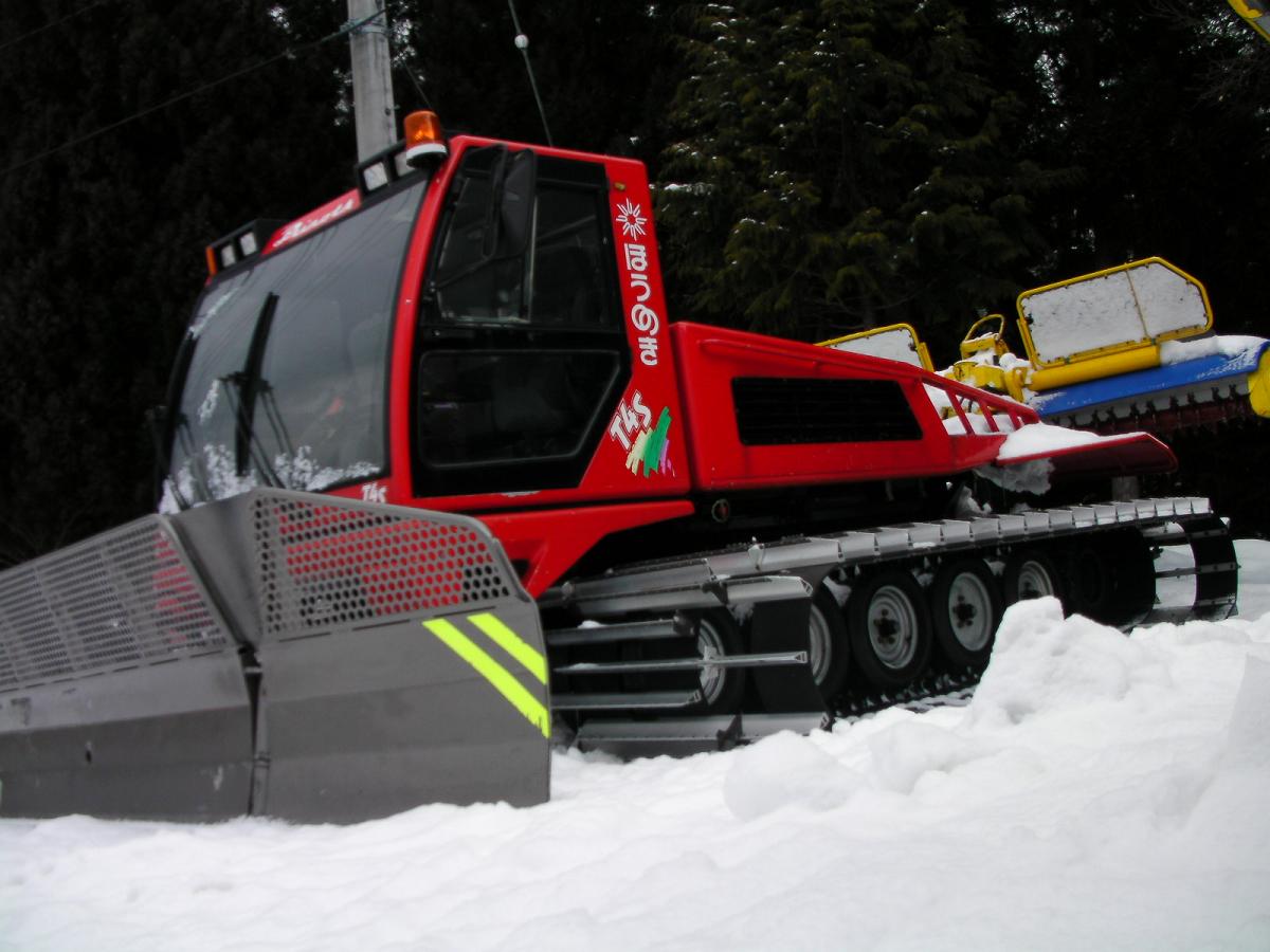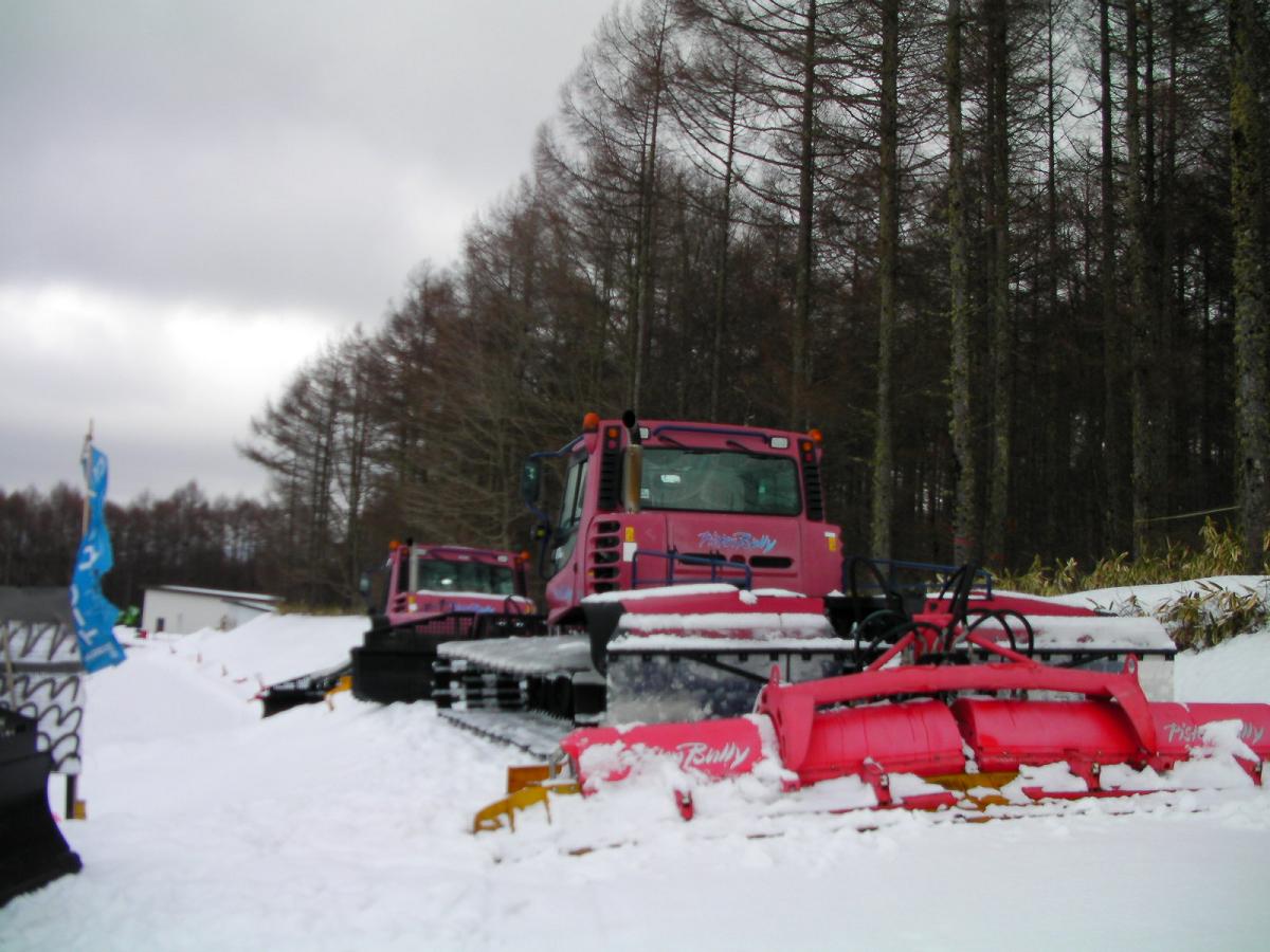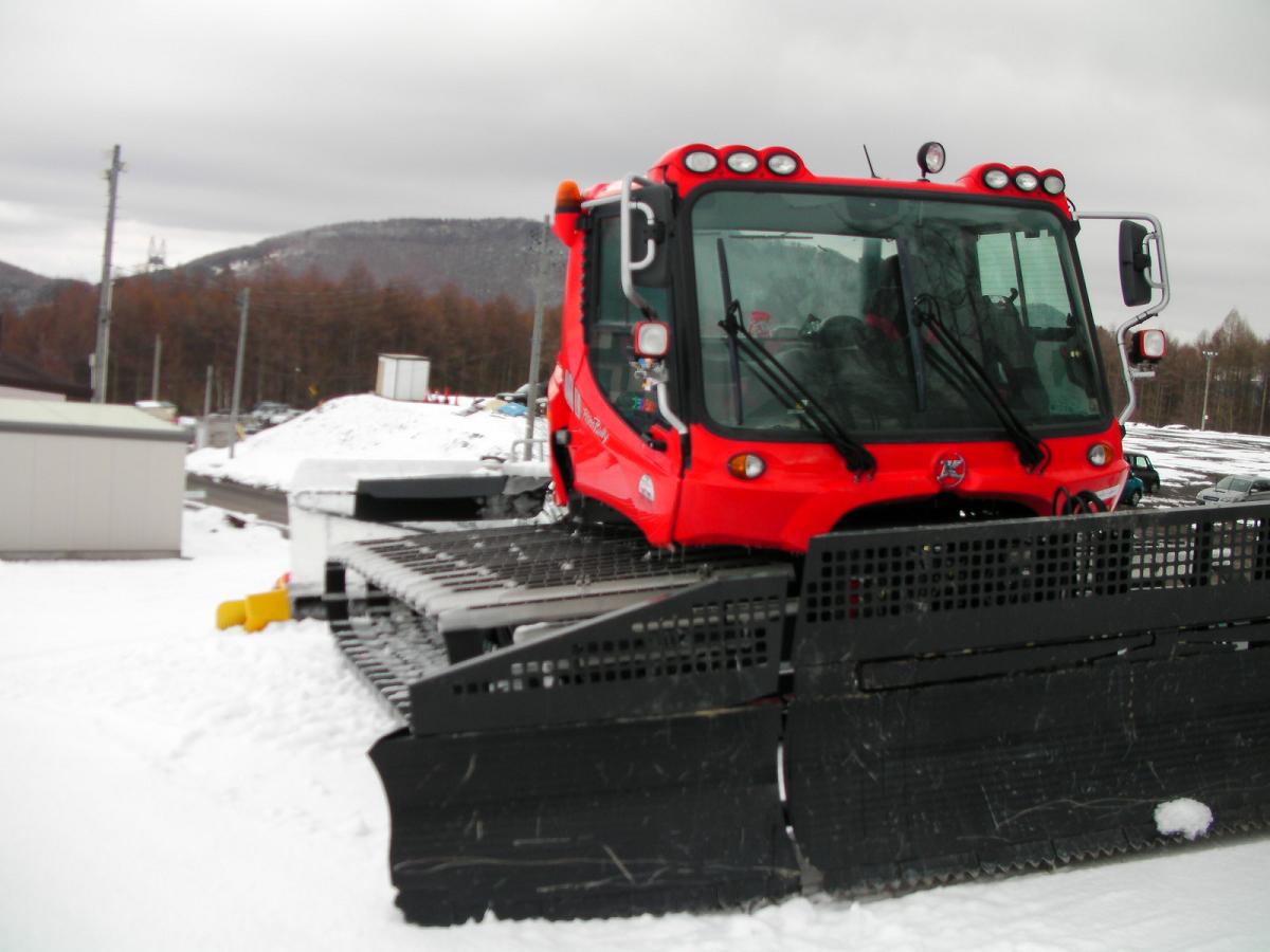 硬くてテクニカルなバーンなので早々に撤退ですorzそれでもこの硬さに大分なれたので最後はロマンチックコースをカービングぽく滑って引き上げました。新車のように見える圧雪車ピステンブーリー400が置いてありました。