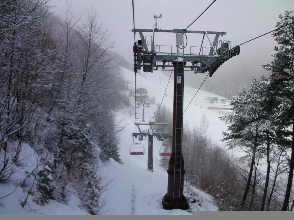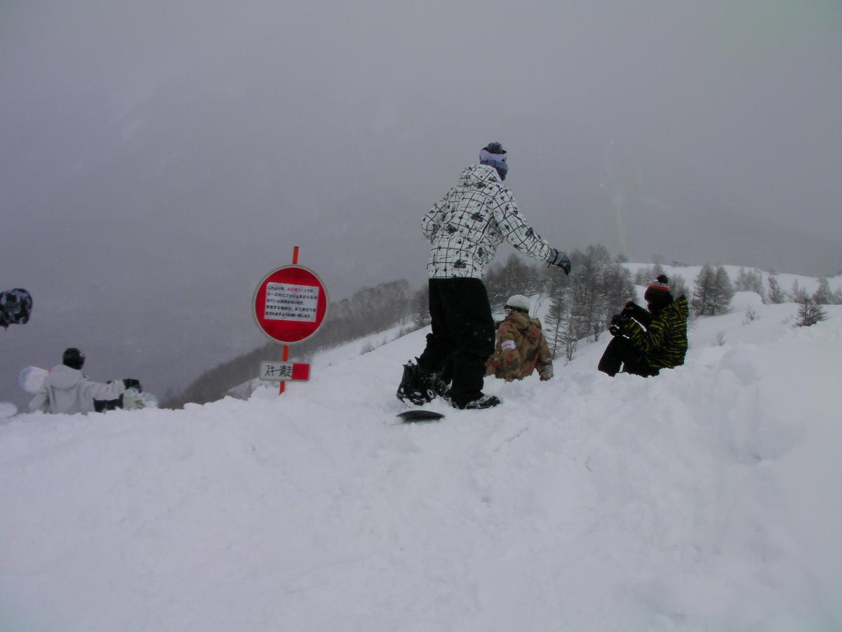 第7+第8ペアと乗り継いで、西側のTOP地点から滑り出すエアターンコース上部の滑走です。最大斜度42度のマウントコースは雪崩の危険性ありという事で、パトさんが丁度閉鎖中でしたorz途中で蛇堀コースに入り、マウントコースの下まで滑りました 。