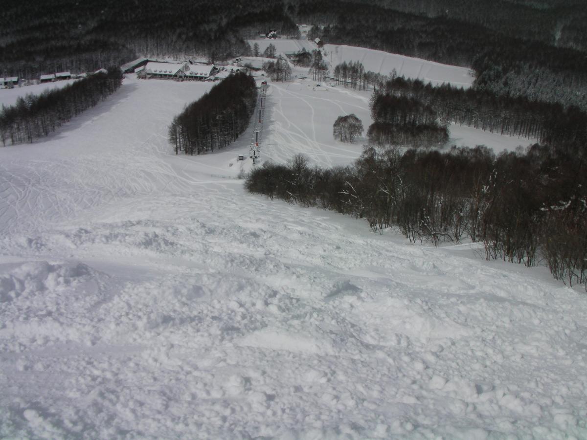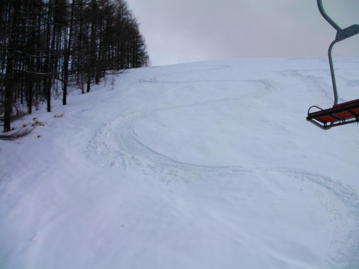 リフト沿いのコース取りでの滑走です。一部急な落ち込みがあり、侮れません。