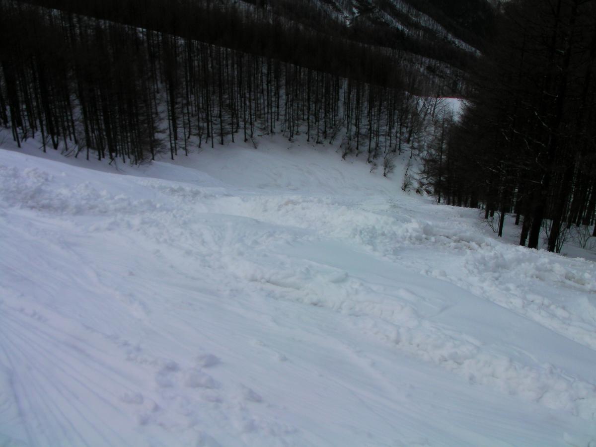 クワッドを降りて真っ直ぐ滑り込むとスラロームコースとなります。やはり表面が削られて硬い下地が露出していましたが、コース幅が広かったのでなんとか滑れましたが、HEADのMAGNUMでは喰い付かない硬さでしたorz