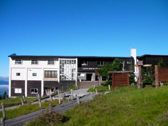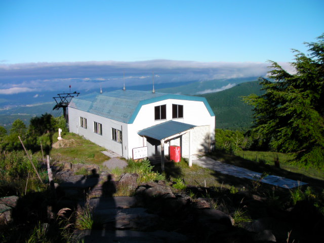横岳ロープウェイの山頂駅前の風景です。通常なら他力本願で7分ほどで山麓から到達できますが、今日は山麓駅から1時間20分ほど自力で歩いての到達です。一部急な所もありますが大半は緩やかで、ウォームアップには良い感じでした。この時期の始発は8:00ですのでこの時間には誰も居らず貸切状態を堪能できました(笑)