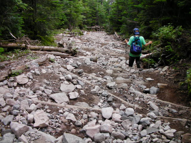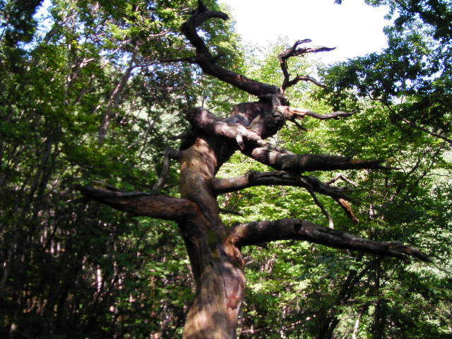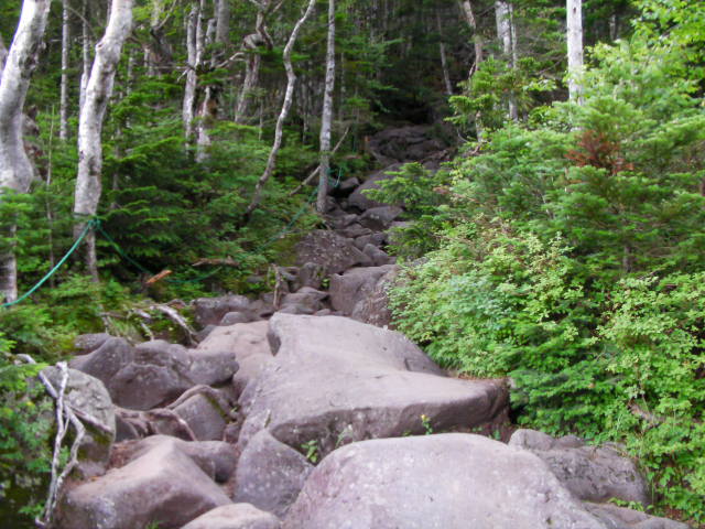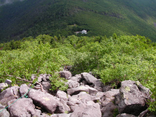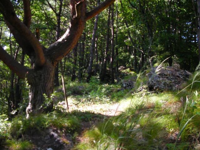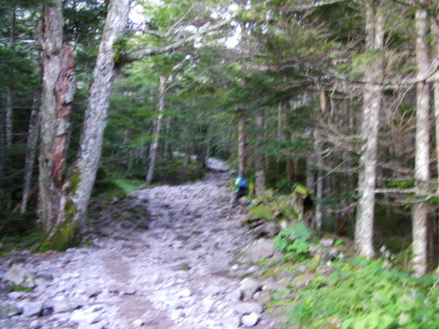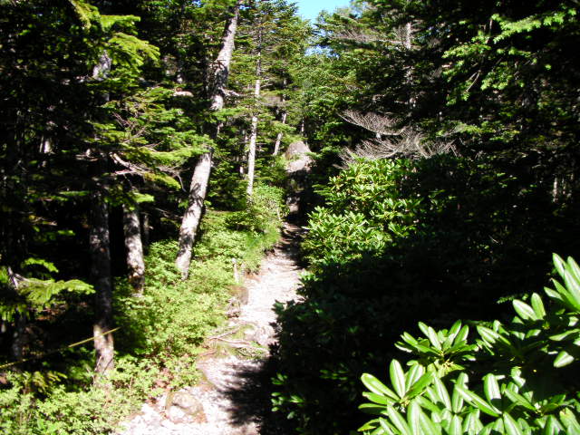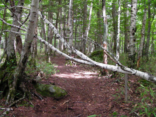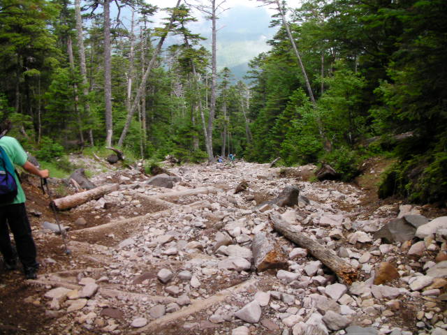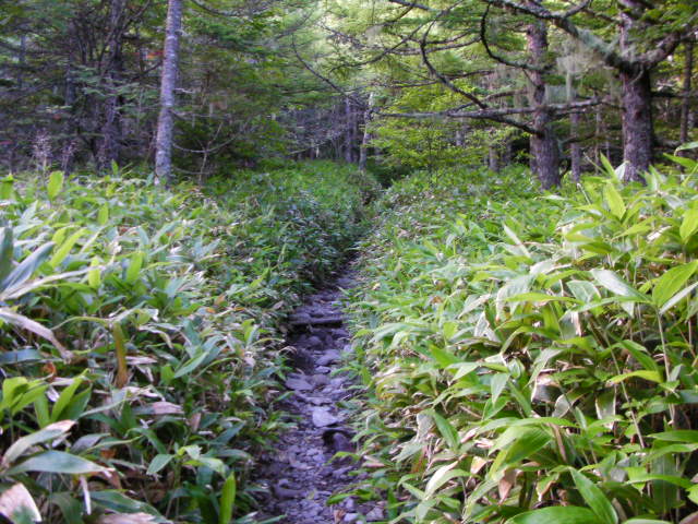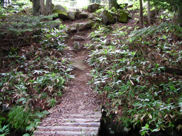 蓼科山七合目登山口を出発して35分程度、登山道を右に分かれた所にある天狗の露地の風景です。抱きかかえようとすれば抱えられそうなサイズの岩が累々と積み重なっています。視界の無い樹林帯歩きに飽きる時間帯にある場所なので小休止には良い場所かも知れませんね。