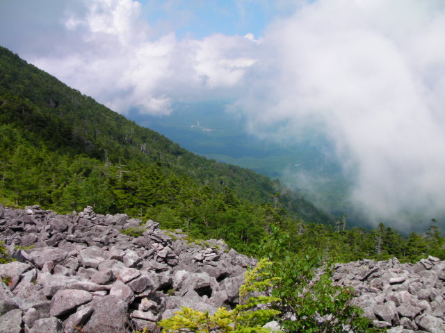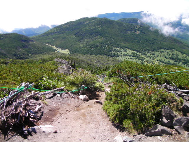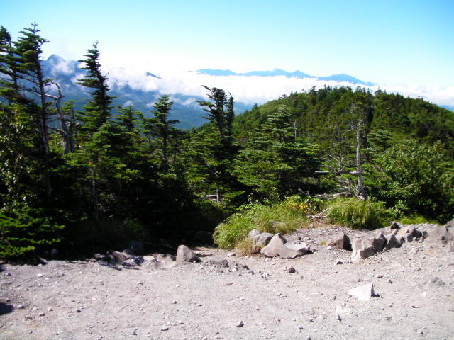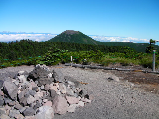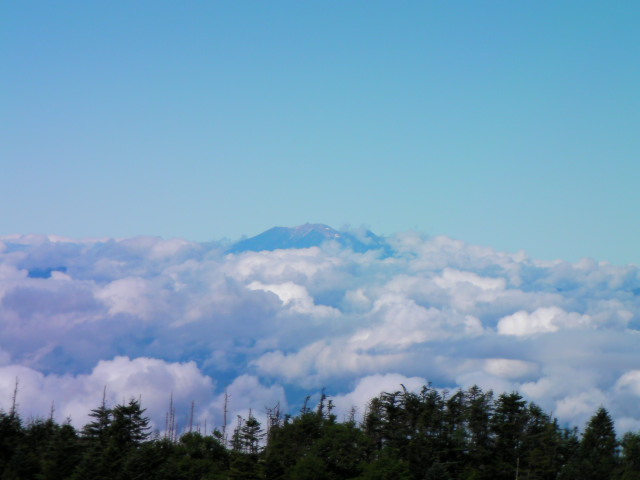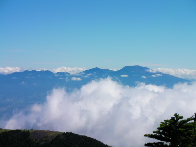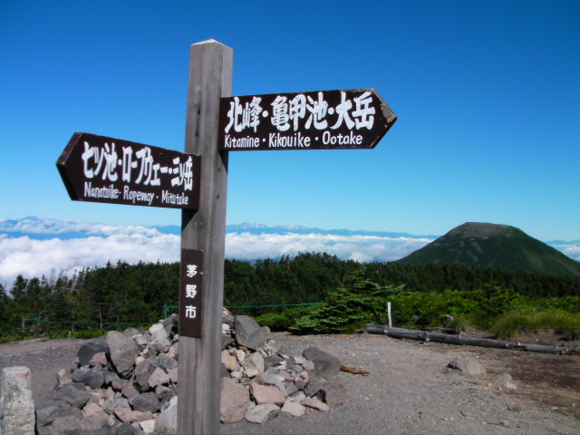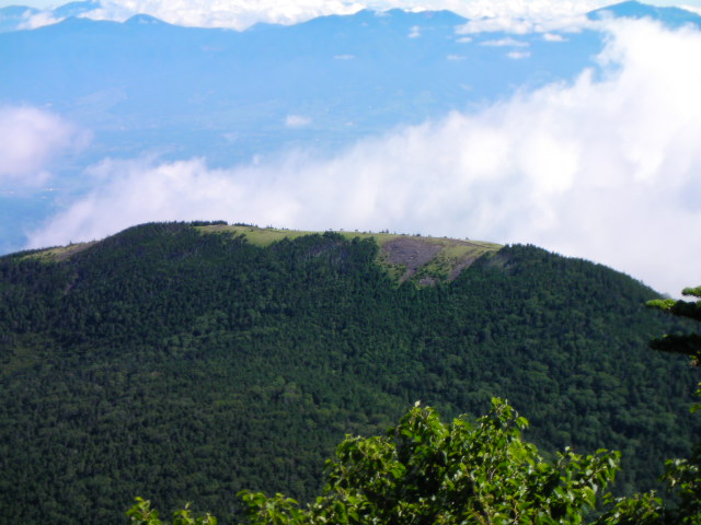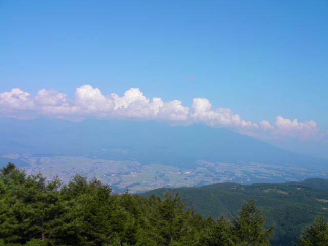 麓からは守屋山方向だけ雲が無かったので選択して登頂しました。はっきりと確認できたのは鷲ヶ峰~車山~蓼科山~天狗岳方向だけで、他の方向は雲の中だったり真っ白な靄の中で良く見えませんでした。1631mの山頂の温度計でも30℃もあって残暑厳しい今年の夏を象徴しているようでした。