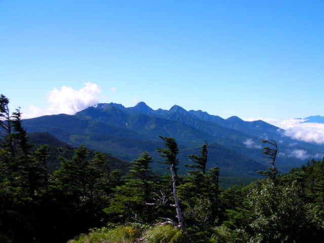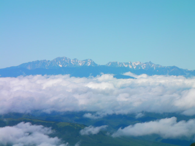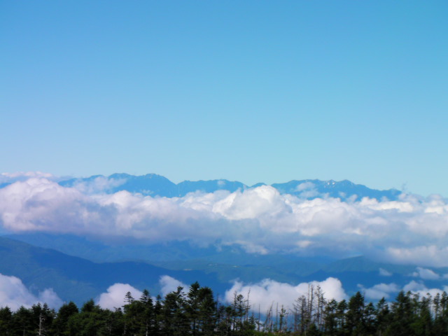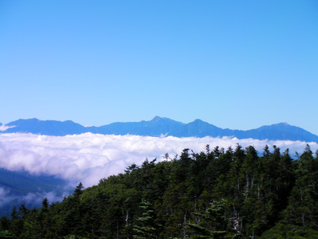 山麓駅から歩き始め南峰経由で2時間25分で到達しました。山麓部と南東側の雲がやや多目でしたが、信州を代表する高山は殆ど見えたと思います。登山道も樹林帯はあるものの樹間から山々が透けて見えてなかなか良い登山道でした。2300m前後にやや急登部がありましたが全体的には緩やかな登りでそれほどキツイ所も無いので助かりました。リピートしたい山となりました。