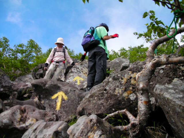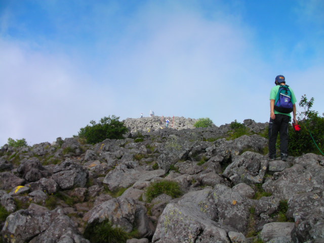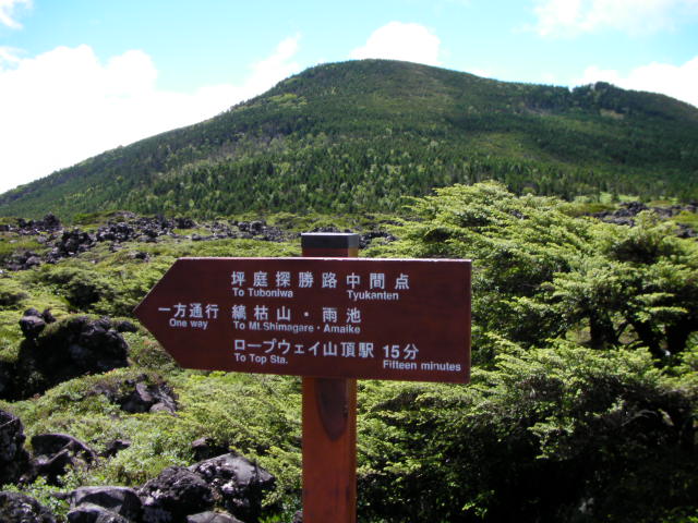 南峰へ戻ると今日初めて登山者と会いました。単独の方と若者の5人PTさんです。PTさんは4時に白駒の池畔の青苔荘を出て、麦草峠⇒茶臼山⇒縞枯山⇒北横岳と縦走してきて、この後亀甲池経由で双子池泊、明日は蓼科山へ登ると言っていました。ザックも大きかったのでもしかしたら編笠山辺りからずっと縦走して来たのかも知れません。この後下山しましたが、RWの始発で登ってきたと思われる方々に多数会いました。平日のこの時間にこれだけの人数が登っているんですね。坪庭に下りるともっと大勢の方が散策していました。ビックリ。