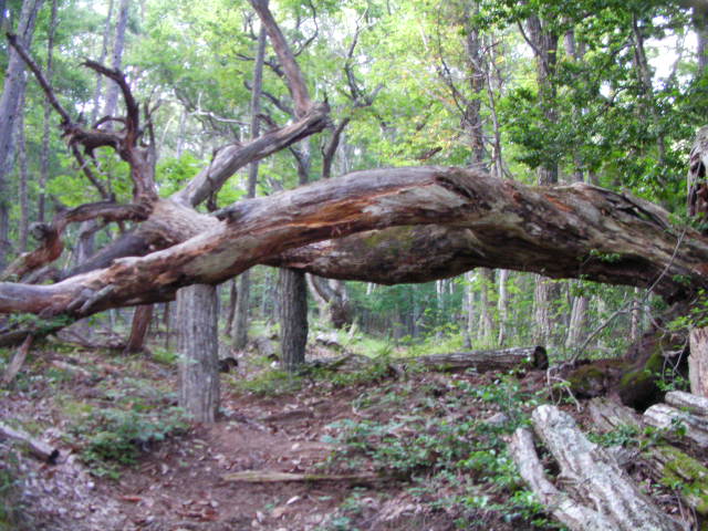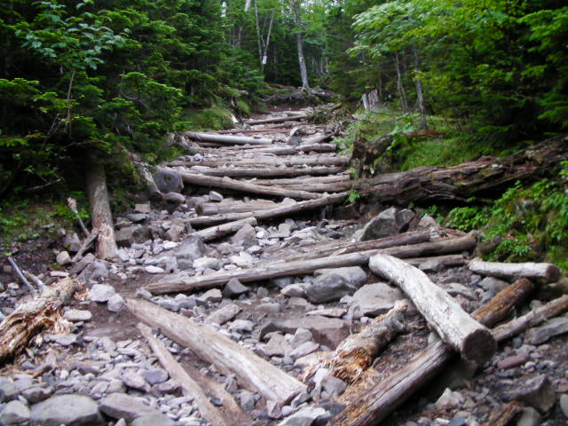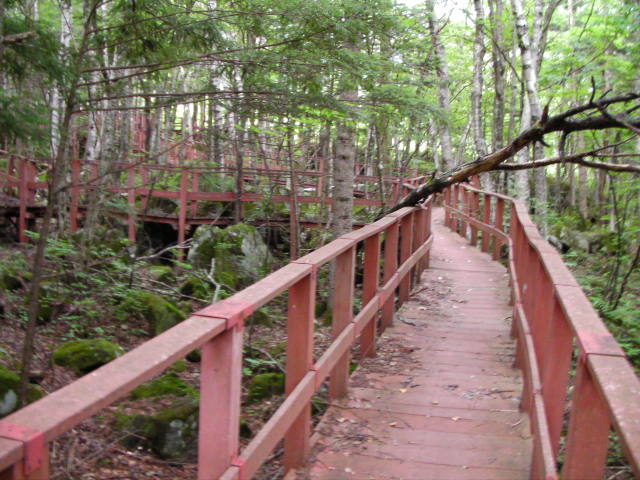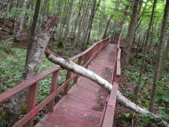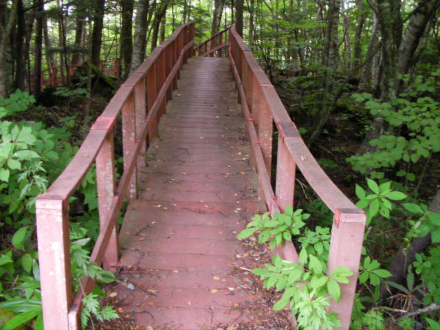 御柱の道トレッキングコースの上部駐車場にあった遊歩道?のような所です。なぜこのような構築物が必要なのか理解に苦しみます。鬱蒼とした樹林帯の中で落ち葉が積もったり、倒木で壊れた箇所があったりで、薄気味悪さをも感じました...