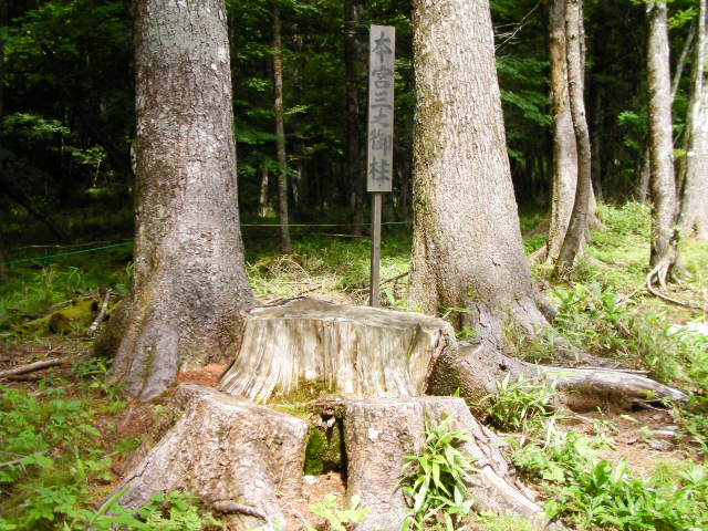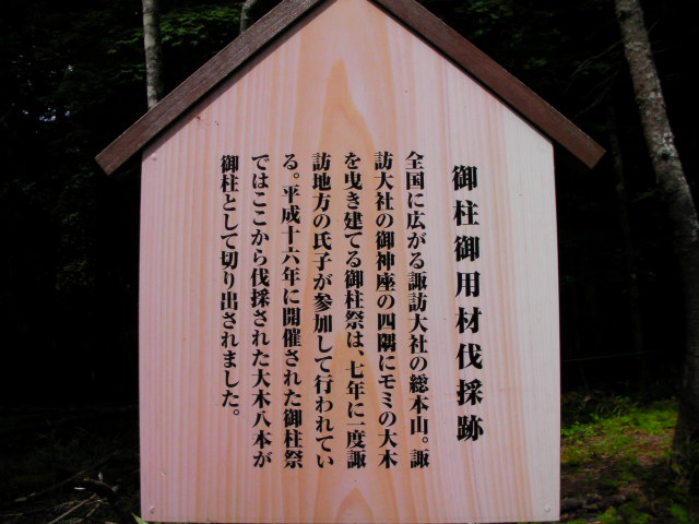 本来上社の御柱は諏訪大社が所有する阿弥陀岳の尾根筋に有る御小屋山で調達していましたが、昭和34年1959年の伊勢湾台風で多くの巨木が倒木してしまい、平成10年1998年には下諏訪町の東俣国有林から、平成16年2004年にはここ長野県北佐久郡立科町町有林から、平成22年2010年には再び北佐久郡立科町の蓼科山国有林と町有林から調達されました。