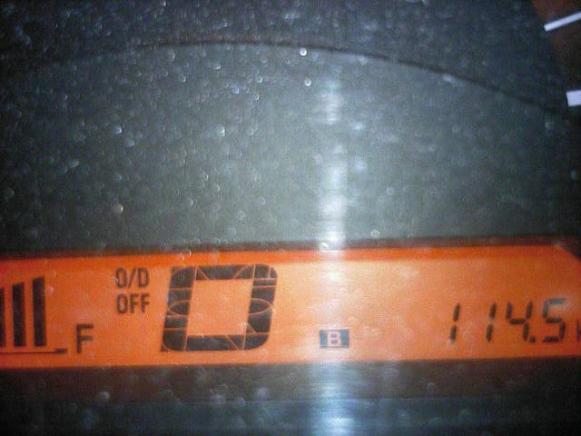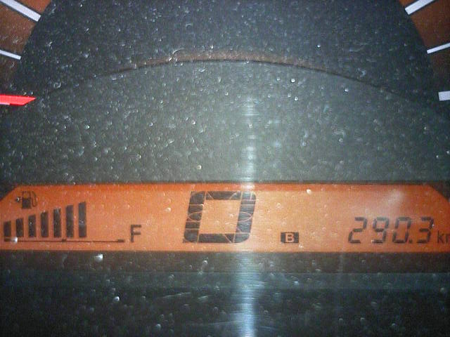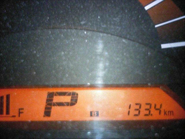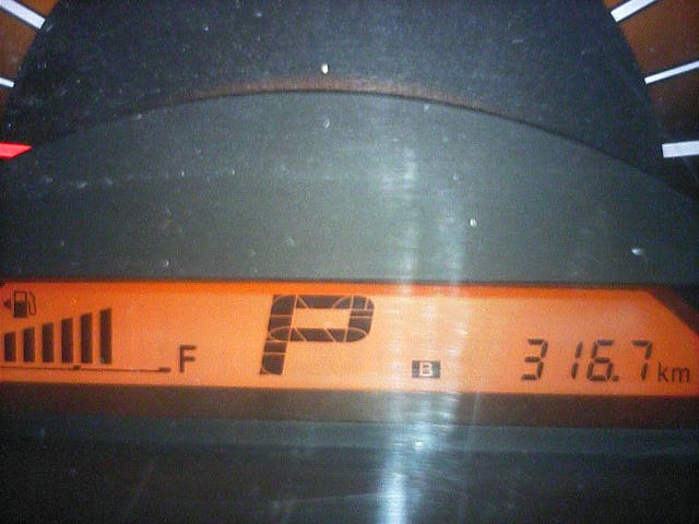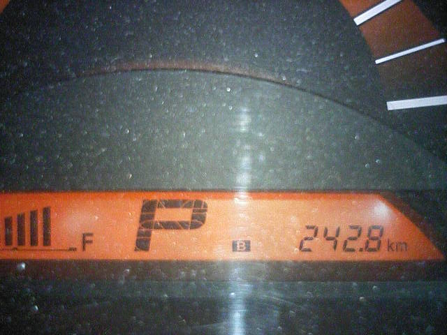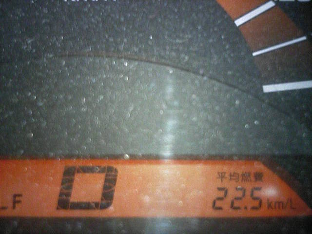 出発時の燃費計。昨晩給油しチョイ乗りで5Kmほど走った状態です。