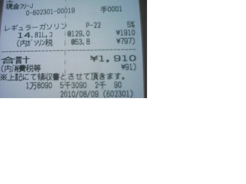 ちなみに1Km走行金額は、@129で計算して5.23円/Kmでした。