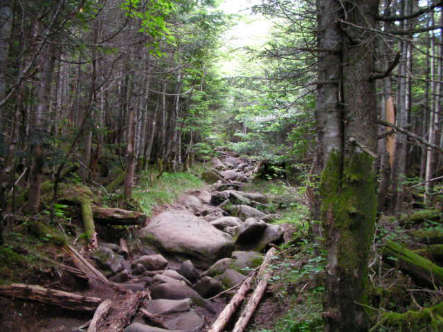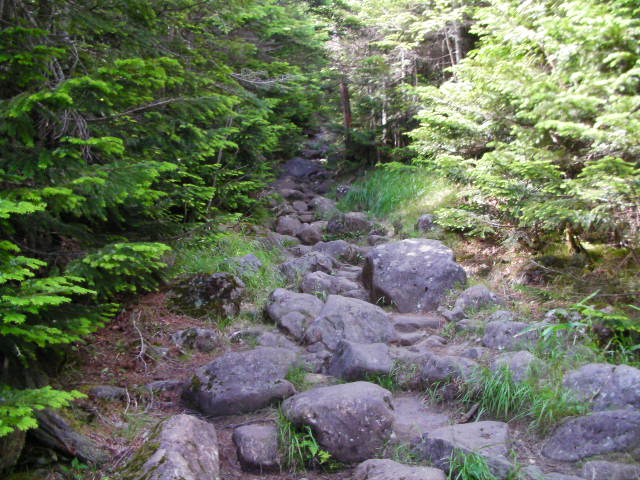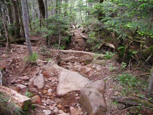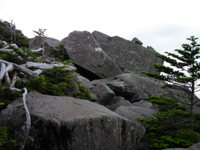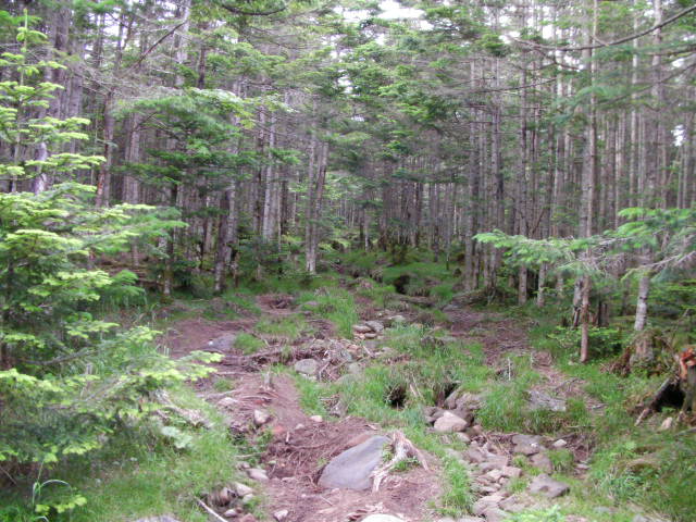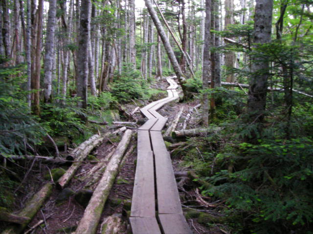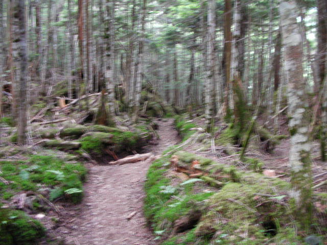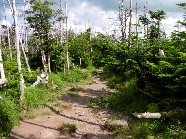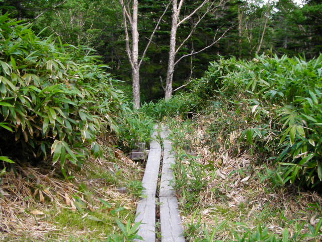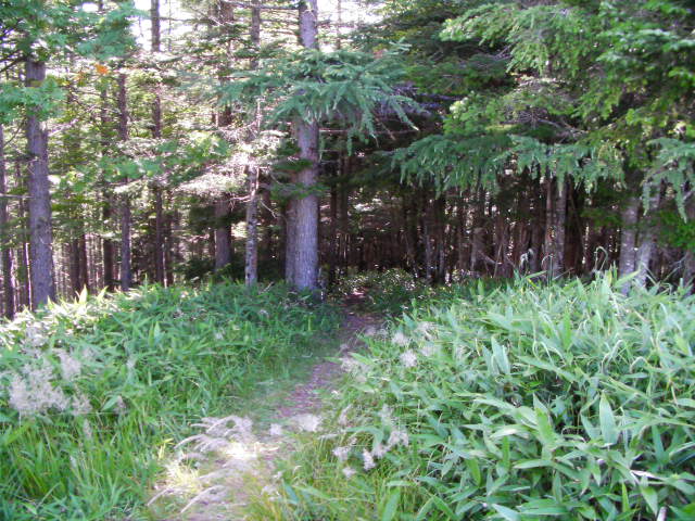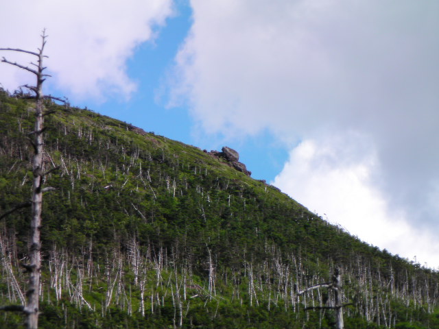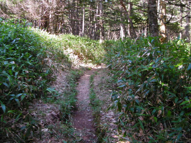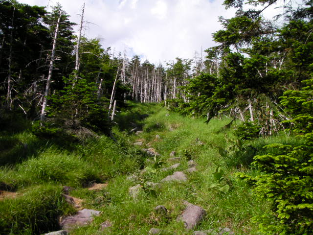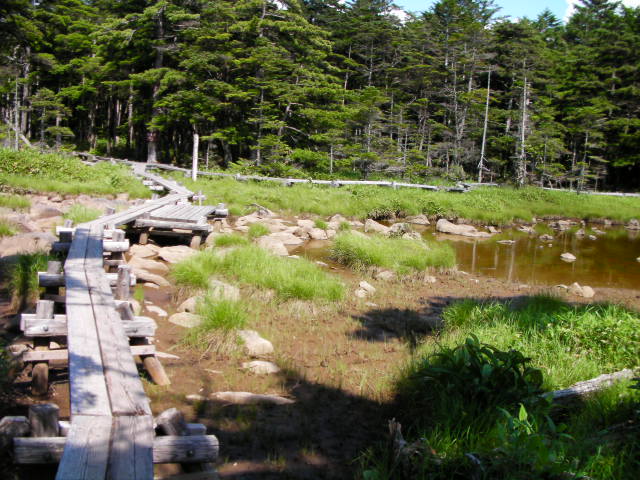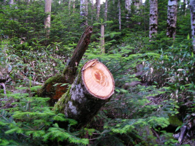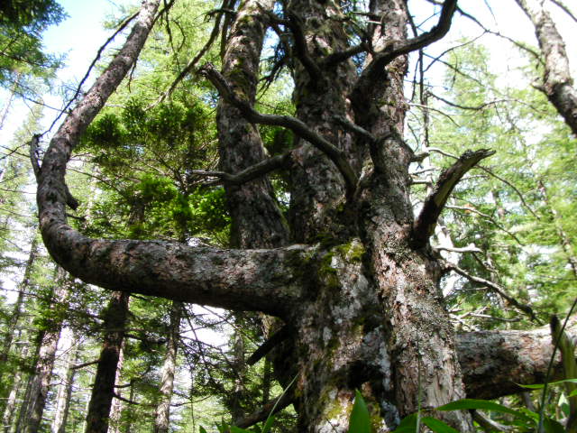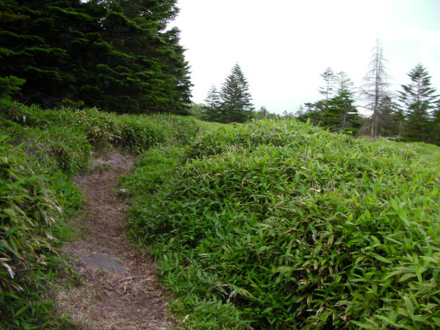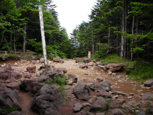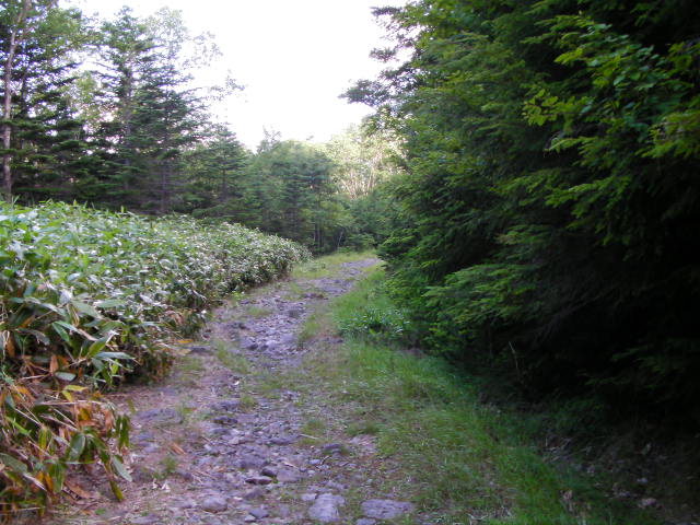 双子池の雌池を離れ、亀甲池へ向かいました。ちょっとした峠のようなルートですが、これが凄いルートで樹林帯は濃いし、ゆえに岩の苔が多くて滑るし、倒木の嵐だし、今までの経験で一番荒れていて厳しいルートでした。峠を下り始めるとご夫婦が休憩していましたが、かなり息が上がっている感じでしたorz
