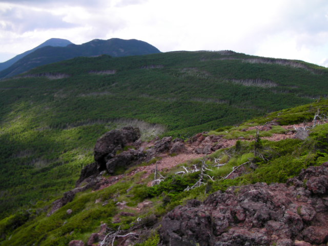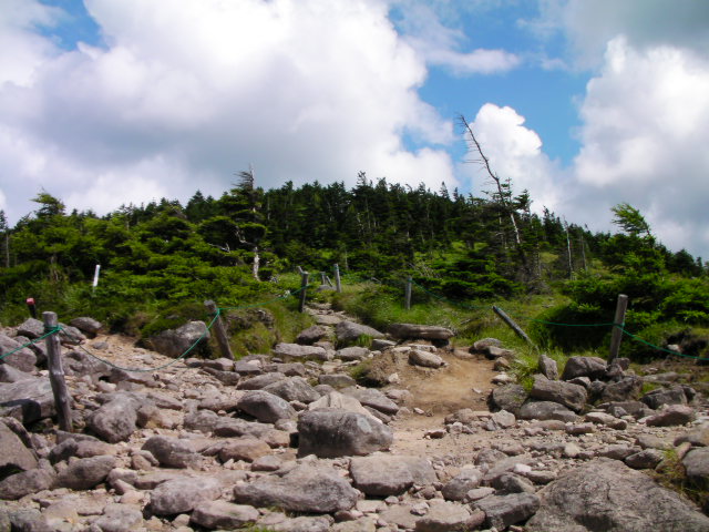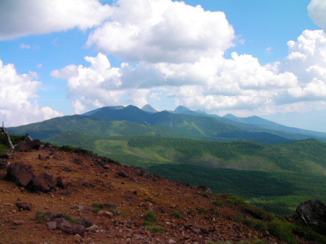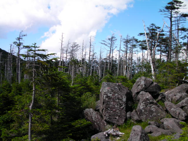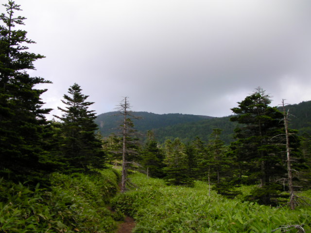 八ヶ岳の縞枯山2403mの南端にある展望地からの風景です。隣の茶臼山の山容がよく判ります。東側の展望があるかと期待しましたが、思ったほどの展望はありませんでした。山頂部は北端にあり、南端の展望地までは10分ほどかかりました。