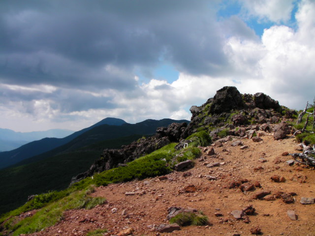 大河原峠の駐車場から岩ゴロの登山道で20分ほどで手前のピークに到達しました。更に奥にもピークがあったのでそちらからの撮影です。西側は横岳と蓼科山があるので遠望はありませんが、東側は雲が無ければ浅間山系~妙義山系が見えると思われます。
