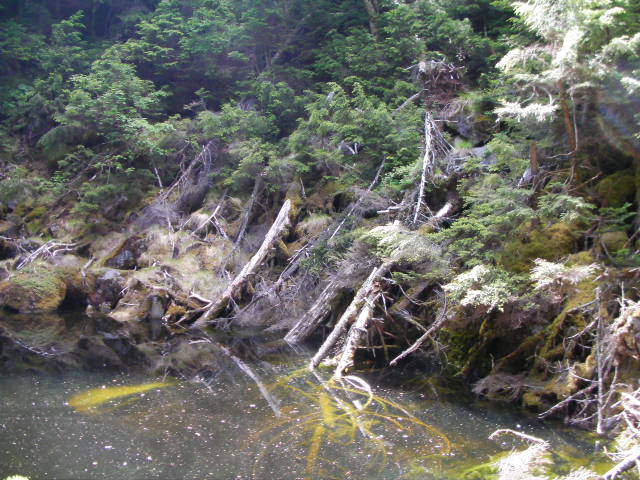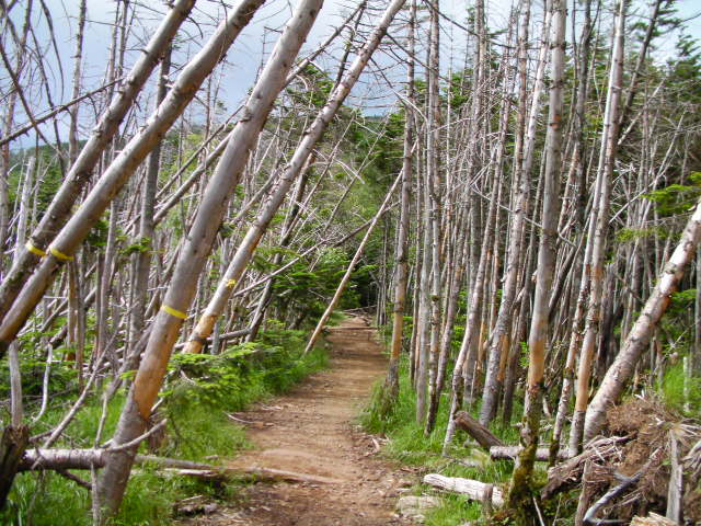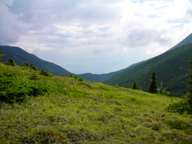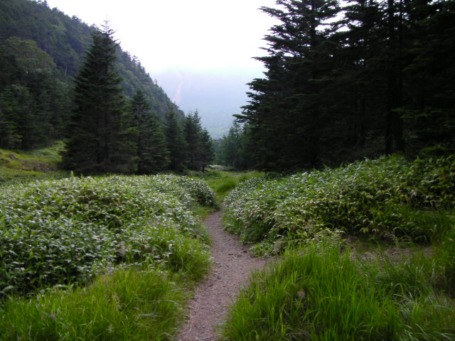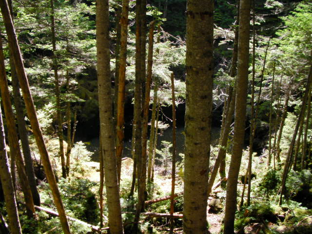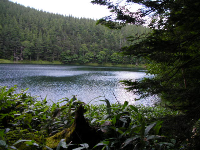 麦草峠から雨池&八柱山へ向かう登山道を右手に少し入った所にある地獄谷です。いかにも噴火口だったというような佇まいで、急な斜面を降りると水の溜まった池がありました。斜面からの倒木や岩にビッシリと生えている苔がワイルドでした。最後湖面に靄が発生し、恐怖映画の効果シーンのようで背筋が凍るような気がしましたorz