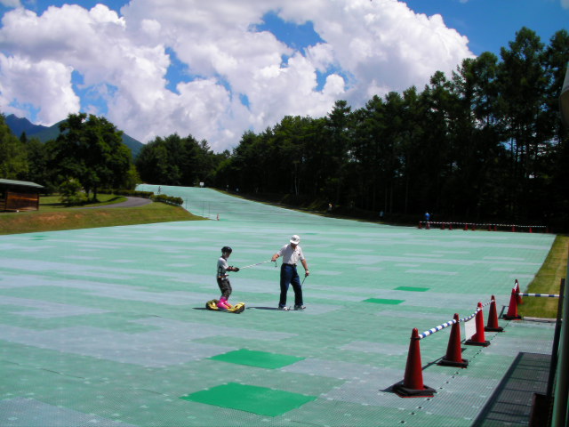 原村の自然文化園の中にあるグレステンサマースキー場へ行ってみました。(今日は見ただけで滑っていません)グランジャーというスキー板の代用品のようなもので滑るのですが、皆さん見事なカービングで滑っていました。またプルークでズラシもできるようです。