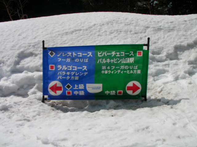 第4フーガ降り場からゴンドラ山頂駅方向へのルートがあったので行ってみましたが、単なる連絡路でしたorzその後はビバーチェ~アダージョ~アレグロ~ドルチェと繋ぎ、最後はゴンドラを潜って山麓駅までというルートで滑りました。山頂駅で8度まで上がっていたので、滑走性も悪くなってきました。しかし最終日でしかも無料でこれだけの長距離が滑れれば文句の付け所がありません!感謝です!!
