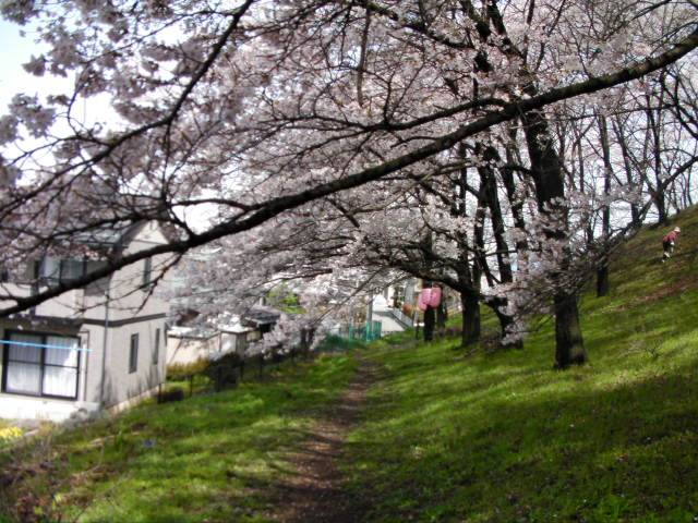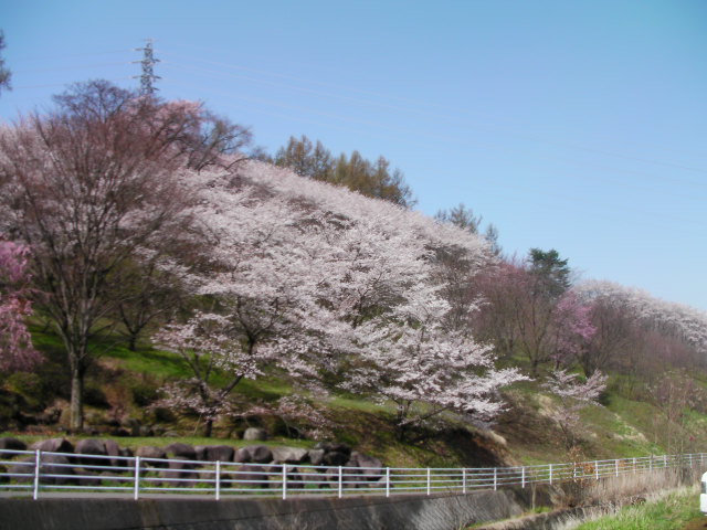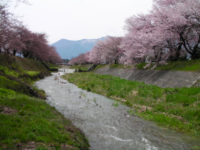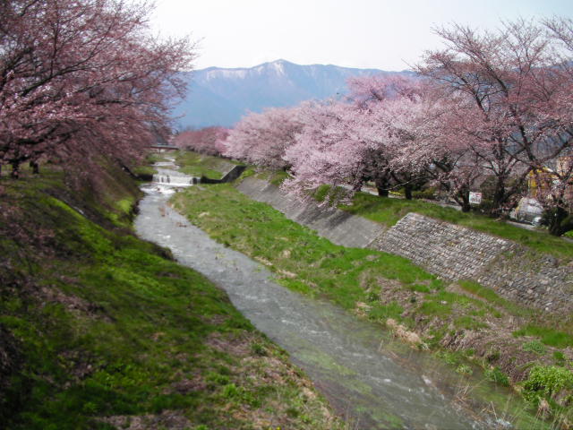 私が勝手にスキー滑走動画の師と仰ぐmotocafeさんの「趣味のスキーブログ」のなかで、昨年の4/18の記事で紹介してくれた黒沢川の桜の現物がどうしても見てみたくて、弘法山の後、光城山経由で来てみました。光城山は標高が高い為か、まだ山麓の数本が開花しているだけで、中腹以降は蕾だったので、遠望しただけでここ黒沢川に向かいました。結果的にはまだ開花始めで、派手さはありませんでしたが、昨年動画を見て感動した光景を生で見られたので満足できました!