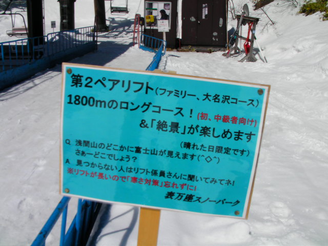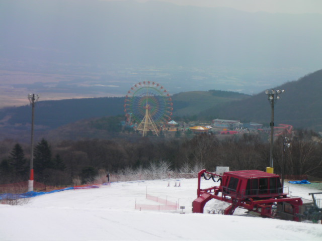 クワッドリフトで登り返しましたが、このクワッドは固定循環式のいわゆる低速タイプでした。滑り出し部にプラントの様な物があり、工場の中でスキーをしているような錯覚に陥りましたorz目隠し等の構造物はできないものでしょうかorz全面滑走できると思っていたら2/4しか滑れないし、WNの天気マークを信用して来たら曇り空で富士山は見えないし、僅か100mのアクセスで有料道路を使わないといけないし、工業プラントの中で滑るし、予想していた所とは随分違っていました。