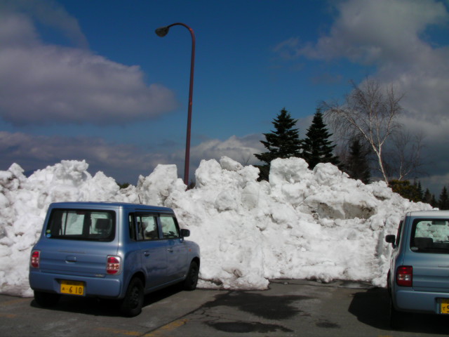 移動時路面状況=路面は見えていて無問題でした。駐車場の除雪された大量の雪をゲレンデに入れれば延命できるのになぁ、などど思ってしまいました(苦笑)