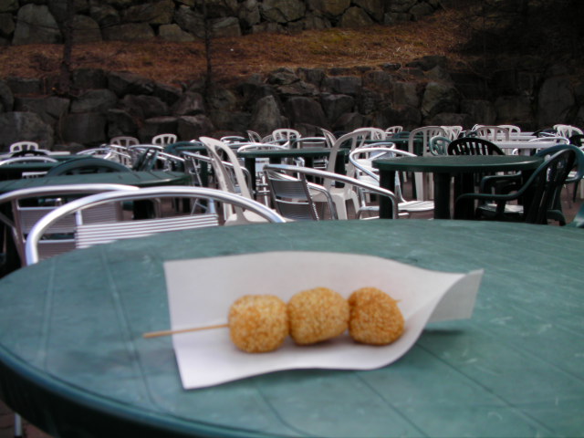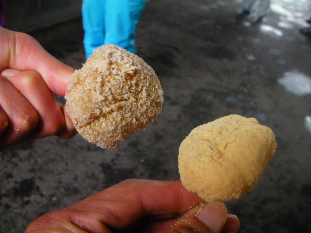 雪が降り始めてしい、丁度2時から餅つきの振る舞いがはじまったので、これでラストにしました。センターハウス方向へのアクセスも首の皮一枚状態でした。